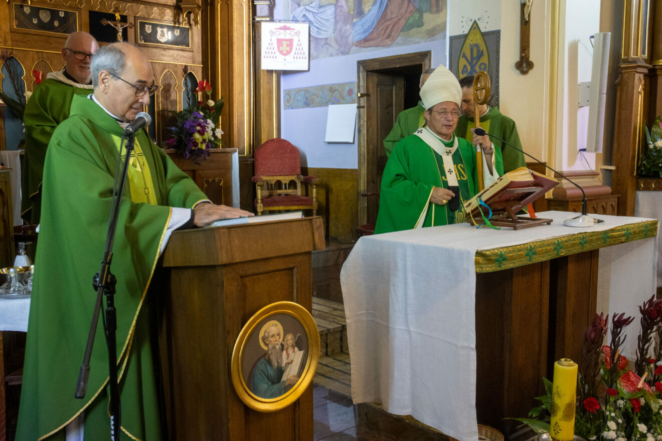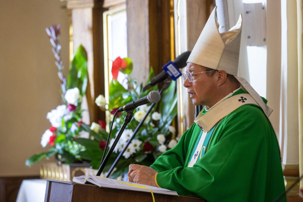 Hierarcha wskazał z ubolewaniem, że niekiedy zwycięża myślenie typu: “z każdym siądę, ale z tobą to nie!” – Jest obietnica Boża takiej wspólnoty, która każe ogarnąć wszystkich, ale ta obietnica trafia w nas na opór. – zauważył. – To miejsce jest miejscem służby tej obietnicy. Panu Bogu dziś za to miejsce dziękujemy! – podkreślił kaznodzieja.