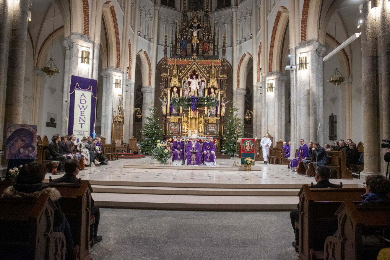 Dodał, że kluczem jest słowo, które Bóg wypowiada do wiernych, które mamy przekazać także innych ludziom. – Jest takie słowo, które od niedzieli będziemy słyszeć przez cały okres Bożego Narodzenia- to słowo „pokój”. Czy pokój jest możliwy? Ktoś wierzy w pokój między Rosją a Ukrainą? Ktoś wierzy w pokój między Żydami, a Arabami? Ktoś wierzy w pojednanie w Polsce? Bóg wypowiada nad nami słowo „pokój”. Czy to słowo się w nas pocznie? Czy wzruszymy ramionami i powiemy: „niemożliwe” – pytał duchowny.
