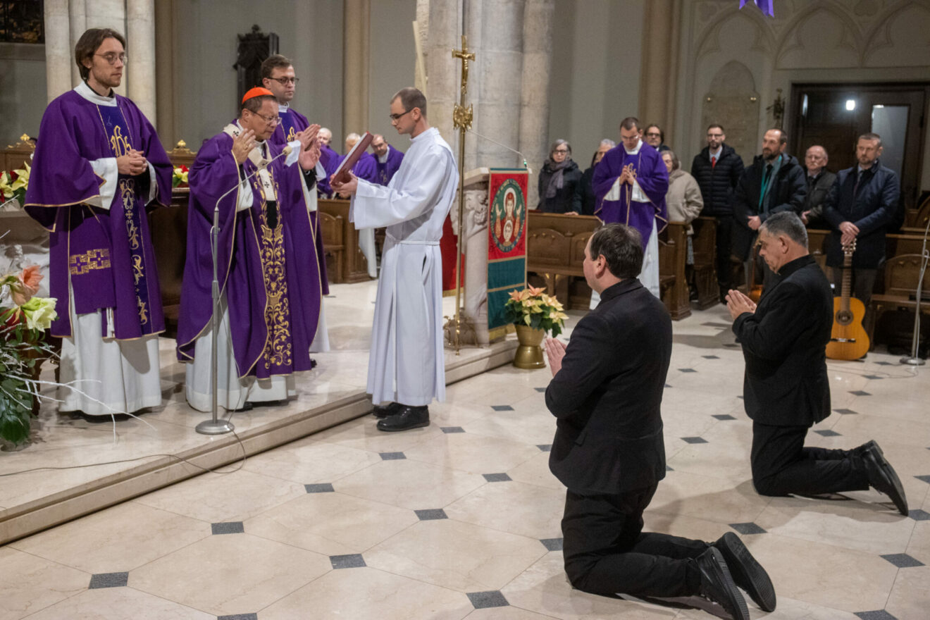 Po homilii wezwani przez rektora Seminarium Redemptoris Mater kandydaci do przyjęcia posługi podeszli do ołtarza, gdzie otrzymali księgę Pisma Świętego oraz błogosławieństwo biskupa uprawniające ich do czytania słowa Bożego w gromadzeniu liturgicznym.