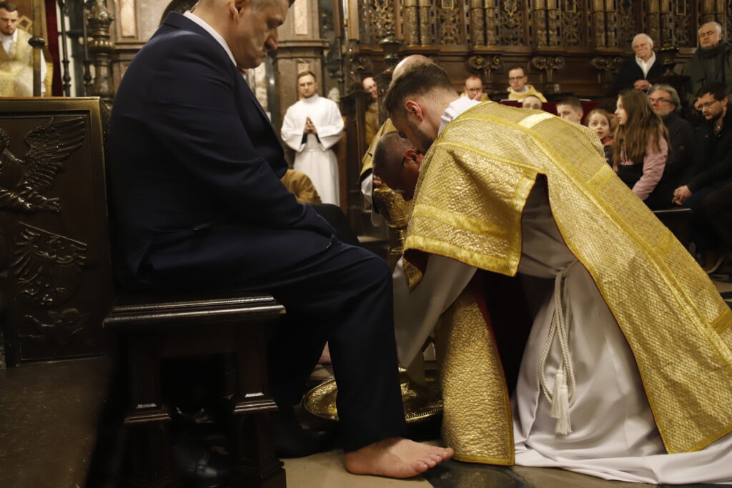 – My nie odgrywamy Wielkiego Czwartku, my go przeżywamy – mówił kardynał. Zachęcił do modlitwy w ciszy, aby każdy w duchu zobaczył Jezusa klęczącego przed jego stopami. – Spróbujmy to zobaczyć, bo to jest istota, to jest paradygmat. Na tym można dopiero budować. Jak ktoś nie przyjmie, nie ma czego przekazywać. Każdy w duchu niech ten moment przeżyje, że Jezus mu myje nogi. Bez tego nie damy rady funkcjonować tak, jak Jezus nam każe. Musimy to wszyscy przeżyć – zakończył.