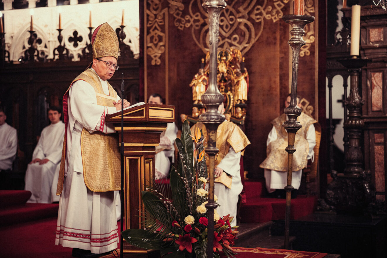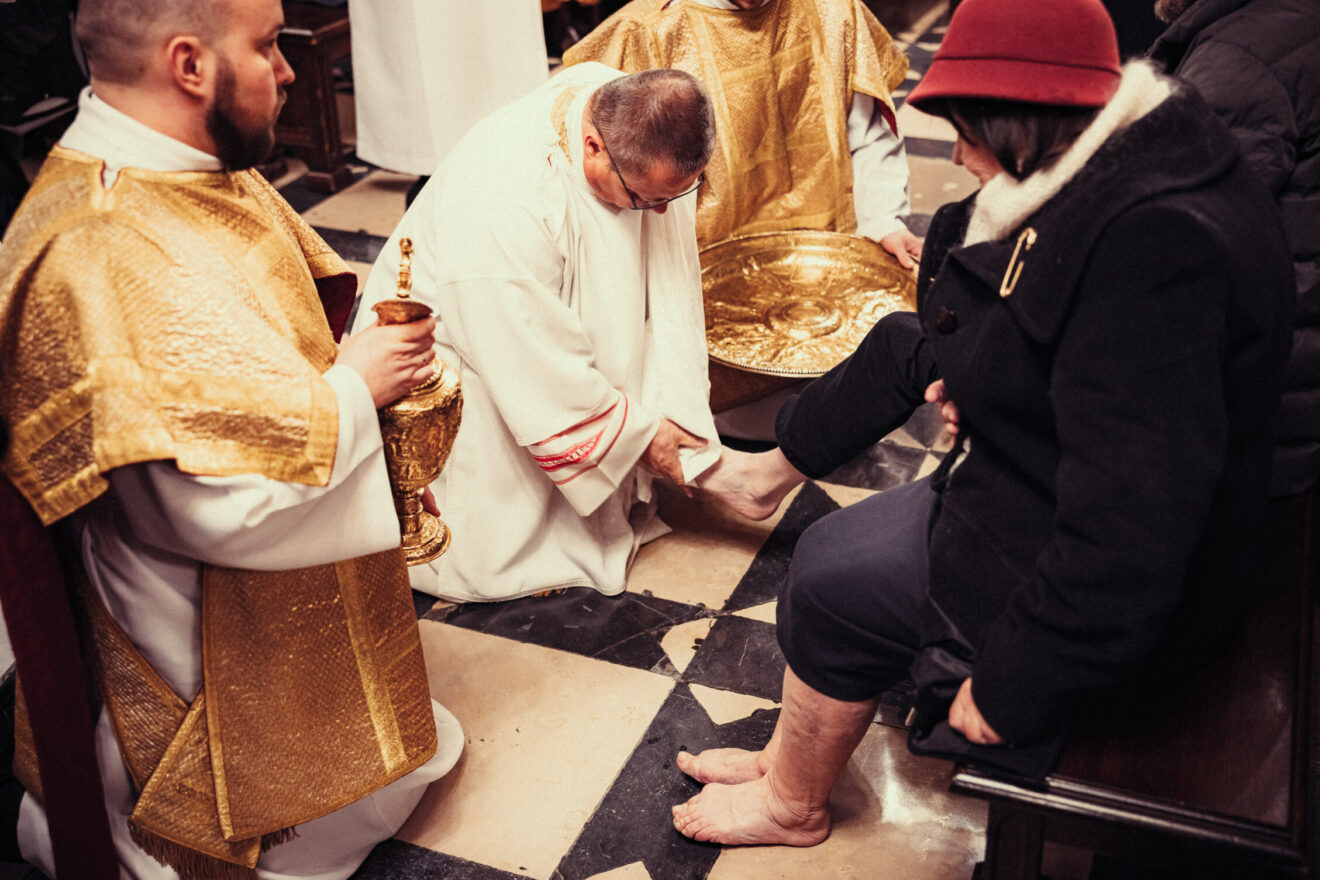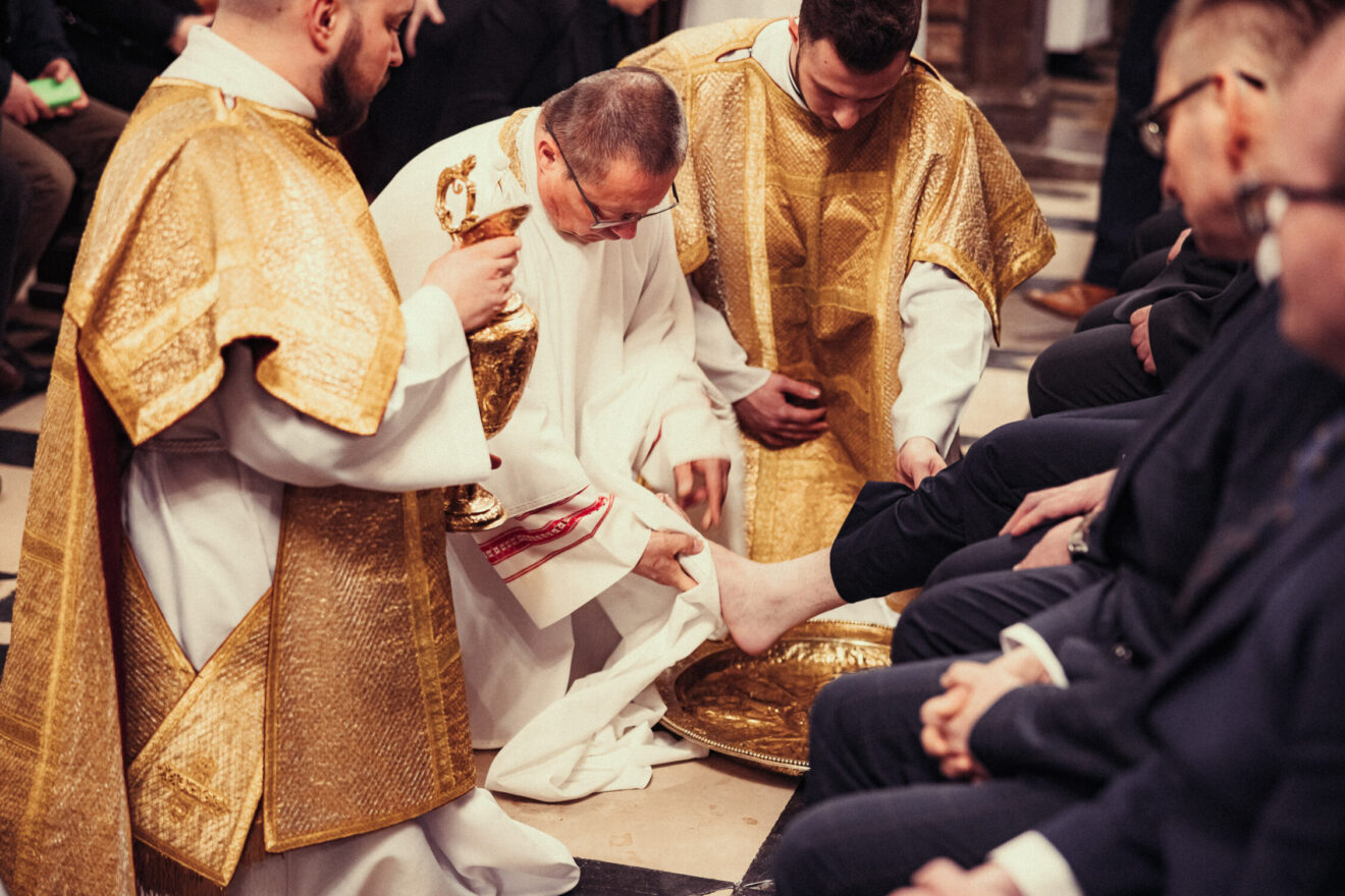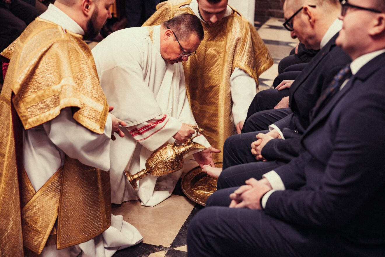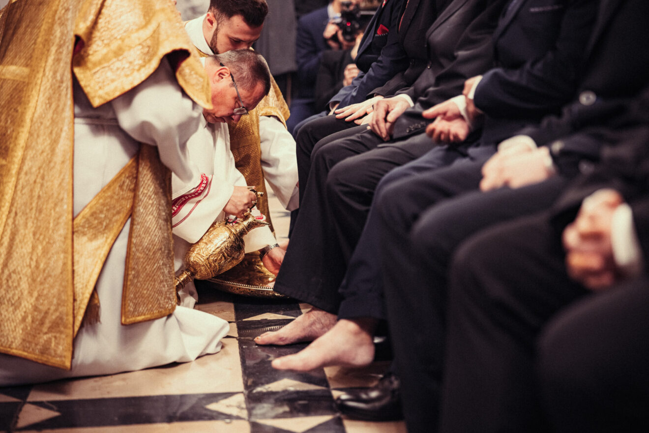 Wskazał na mądrość Kościoła, który w Wielki Czwartek nie czyta Ewangelii o ustanowieniu Eucharystii, ale przypomina coś wcześniejszego, głębszego. Zauważył, że Kościół przez wieki tego dnia wieczorem nie sprawował Eucharystii a jedynie obrzęd, który do dzisiaj nazywa się „mandatum”, czyli umycie nóg. Podkreślił, że ten znak ma dziś pierwszeństwo przed celebracją. W tym kontekście zaprosił do tego doświadczenia każdego, kto chce przeżyć ten gest.