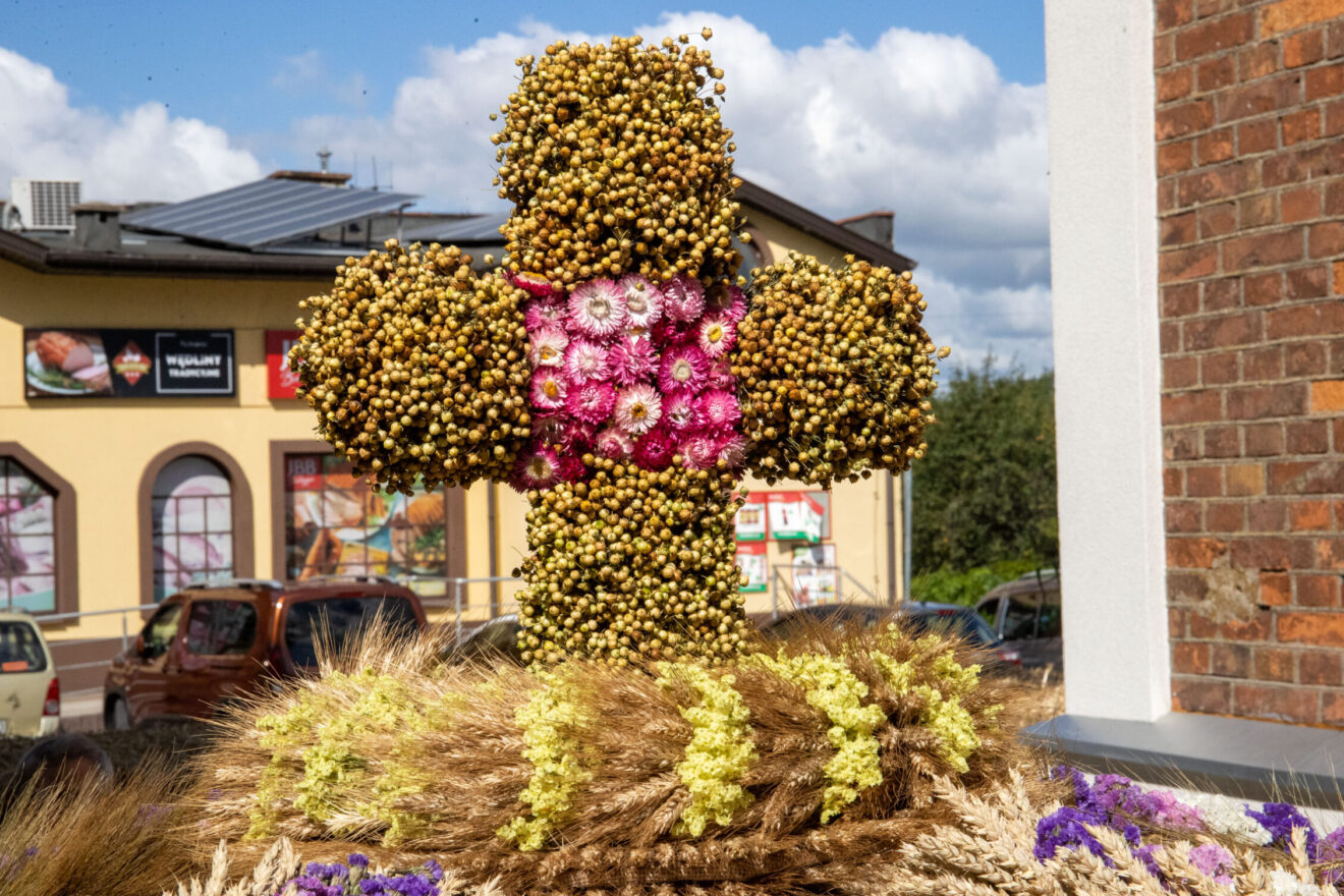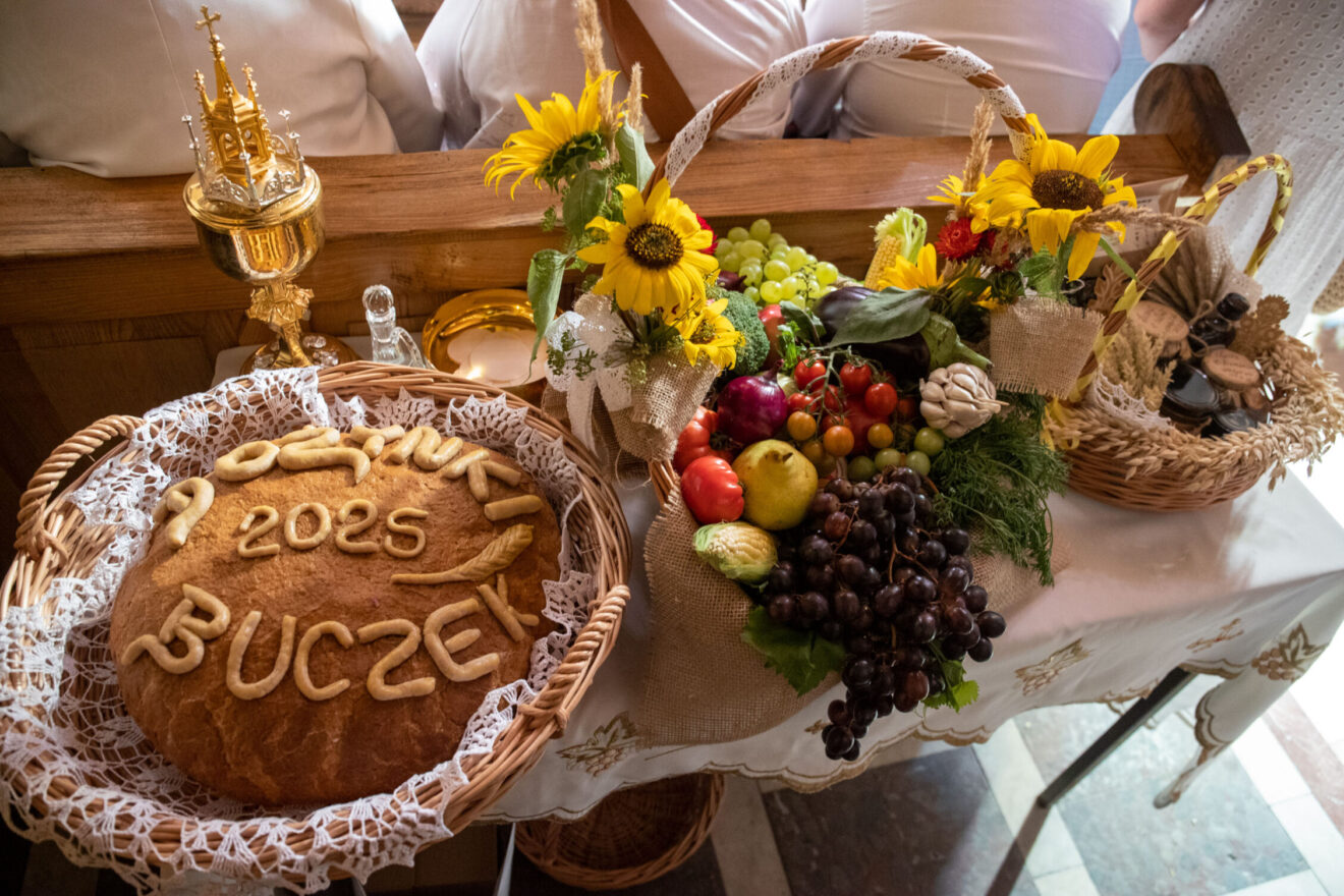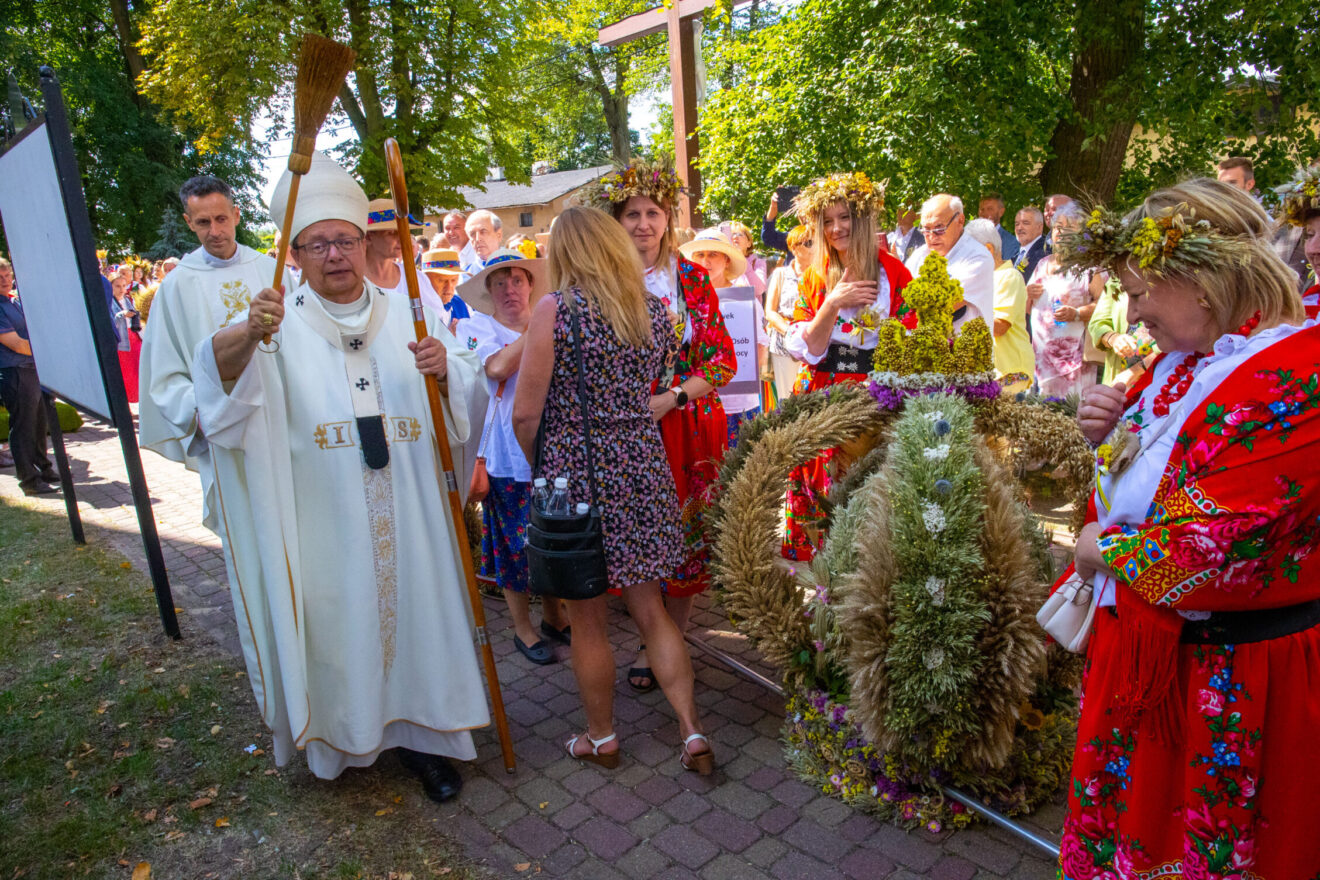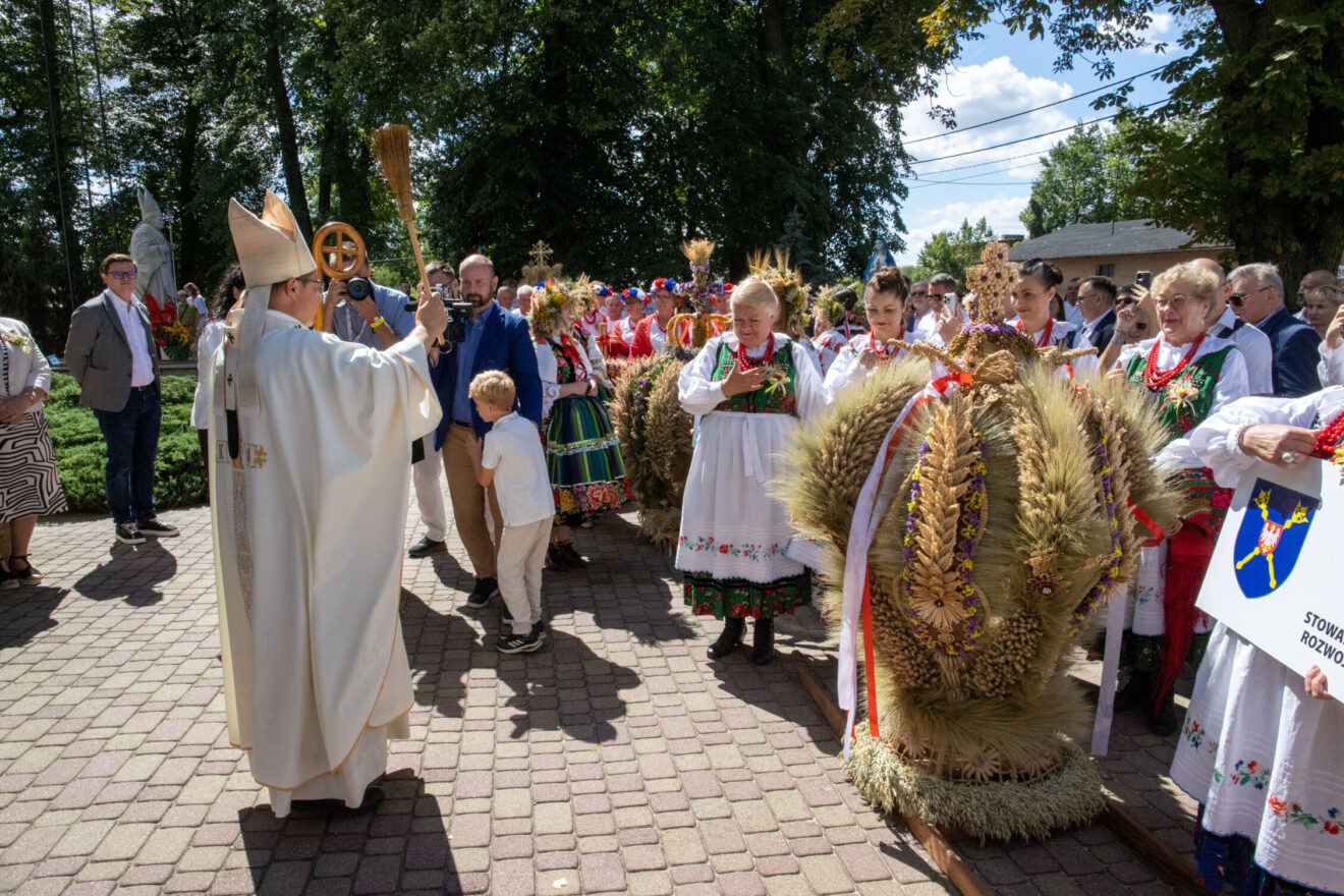 Przed zakończeniem Eucharystii kard. Ryś pobłogosławił i poświęcił wieńce dożynkowe, dziękując wraz z rolnikami za tegoroczne plony, będące owocem ziemi i pracy rąk ludzkich. Duchowny przypomniał, że chleb i wino, które składane są na ołtarzu podczas każdej Mszy świętej i ofiarowane Bogu, mamy dzięki ofiarnej pracy rolników, za którą dziś dziękujemy.