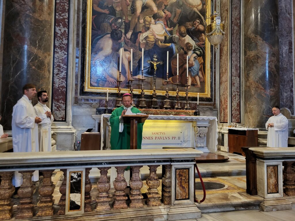 Fot. ks. Paweł KłysO misji, do której Jezus posyła uczniów wyposażonych w konkretne dary, by mogli iść i głosić, mówił kardynał Grzegorz Ryś podczas porannej Mszy świętej sprawowanej przy grobie św. Jana Pawła II w Bazylice św. Piotra w Rzymie.