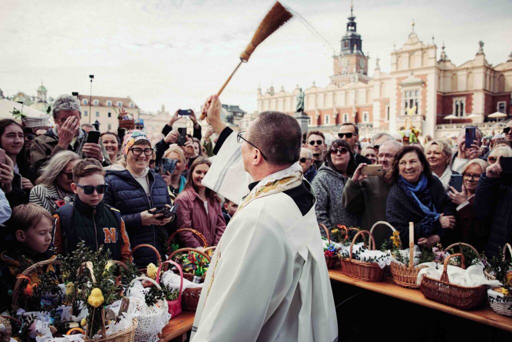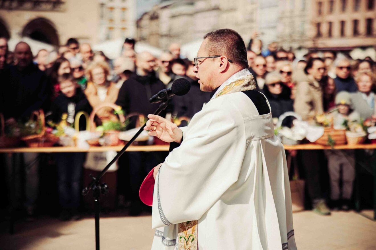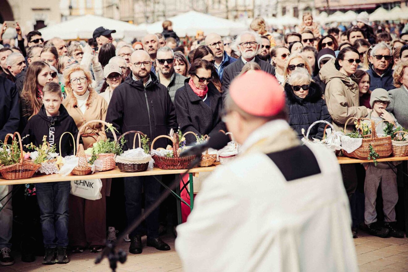 Spotkanie przed Bazyliką Mariacką w samo południe rozpoczęła się od modlitwy Anioł Pański w intencjach papieża. Kard. Grzegorz Ryś zaznaczył, że poświęcenie pokarmów na stół wielkanocny jest jednym z piękniejszych obrzędów polskiej tradycji. – Prawda tych świąt jest zawarta w tych pokarmach – mówił metropolita krakowski zauważając, że każda z potraw, podobnie jak w czasie żydowskiej Paschy, ma symboliczne znaczenie.