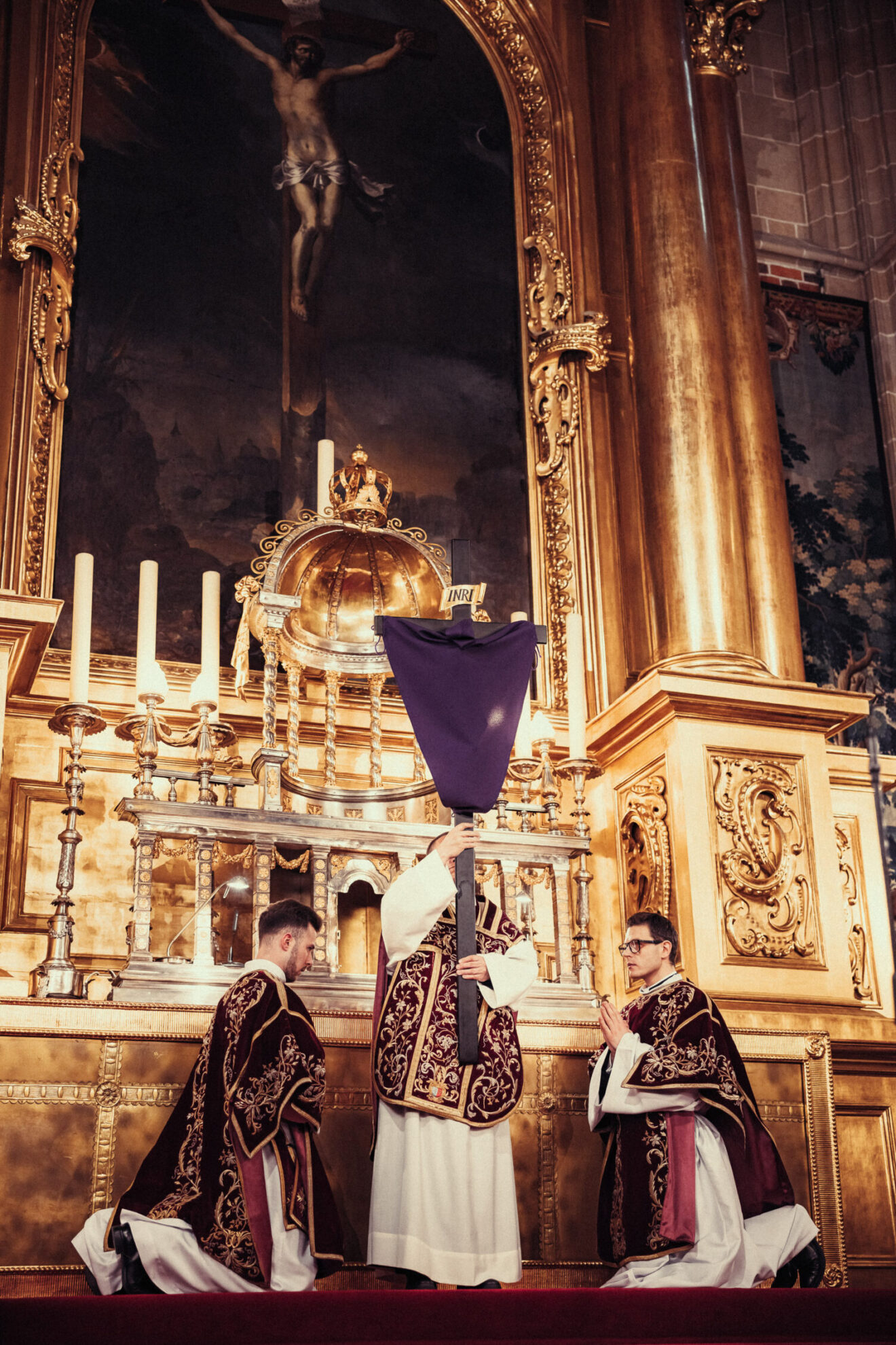 Wskazał na jeszcze jeden poważny wątek w tej Ewangelii – że Jezus jest arcykapłanem. W tym kontekście kardynał zwrócił uwagę na suknię Jezusa, której żołnierze nie podzielili między siebie, bo nie była szyta, ale tkana od góry do dołu. Taką suknię nosił arcykapłan. Przywołał komentarz papieża Benedykta XVI do modlitwy arcykapłańskiej Jezusa – Ojciec Święty pisał, że nie da się jej zrozumieć bez kontekstu żydowskiego Święta Przebłagania Jom Kipur. Jezus w tej modlitwie zachowuje się tak jak żydowski arcykapłan w Dzień Przebłagania – modli się najpierw za siebie, potem za swoich bliskich, a na końcu za cały lud. – Jesteśmy w Dniu Przebłagania. Jesteśmy w dniu, w którym arcykapłan składa ofiarę za cały lud – mówił metropolita krakowski dodając, że Jezus składa w ofierze samego siebie.