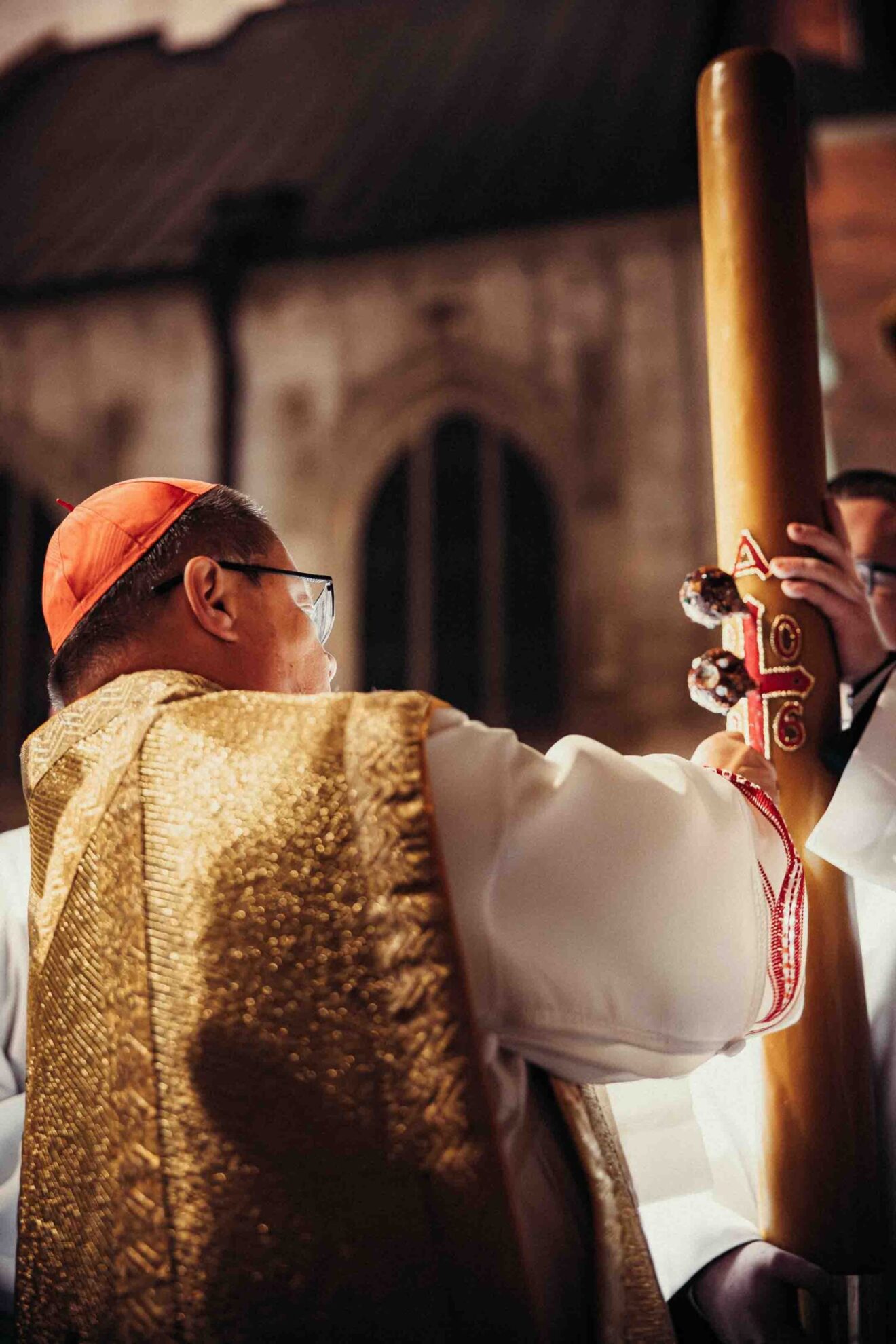 Fot. Piotr Tumidajski– Jeśli tej nocy przeżywamy zmartwychwstanie, jeśli tu między nami jest żyjący Jezus, to znaczy, że jesteśmy posłani – mówił kard. Grzegorz Ryś podczas Wigilii Paschalnej w Katedrze na Wawelu.