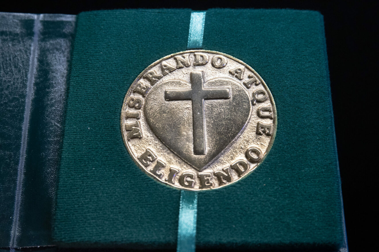Medal na awersie przedstawia krzyż wpisany w serce z napisem ”SPOJRZAŁ Z MIŁOSIERDZIEM I WYBRAŁ”, a na rewersie dłoń Papieża Franciszka z jezuickim herbem oraz napisem „PAPIEŻ FRANCISZEK”.