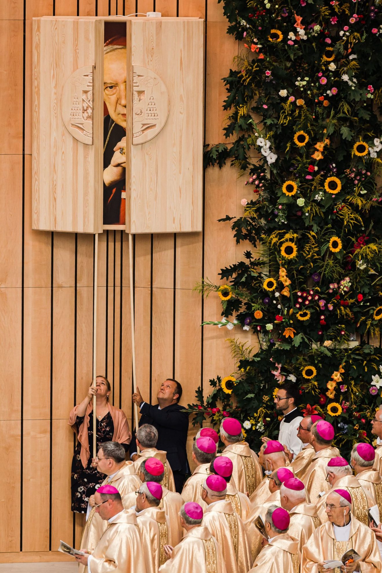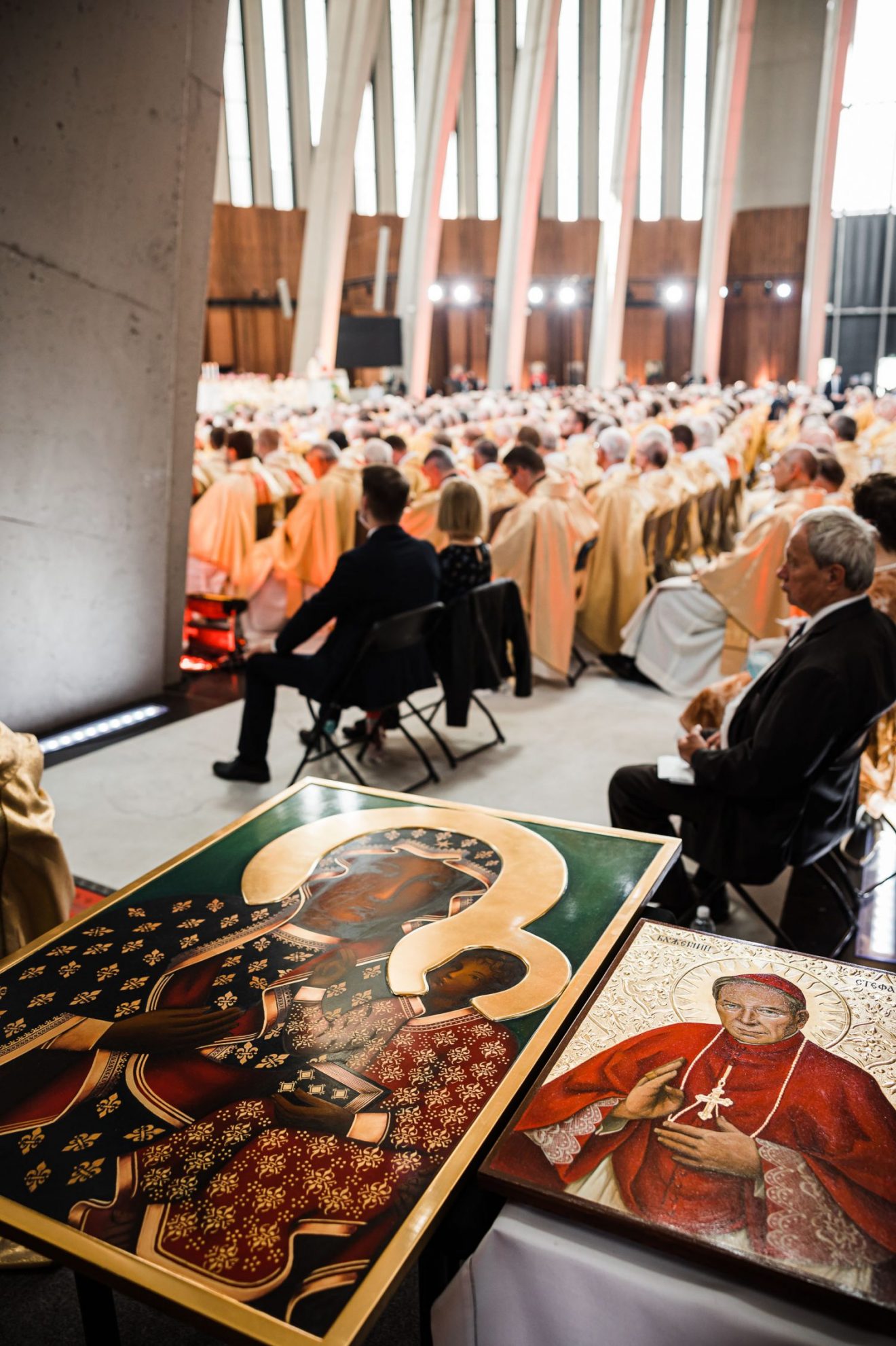 Następnie zostały odsłonięte wizerunki nowych błogosławionych. Wizerunek bł. Stefana Wyszyńskiego odsłonili członkowie założonego przez niego w 1952 r. Ruchu Apostolskiego “Rodzina Rodzin”. Wizerunek bł. Elżbiety Czackiej odsłoniły nauczycielki i wychowawczynie z Ośrodka Szkolno-Wychowawczego Towarzystwa Opieki nad Ociemniałymi w Laskach.