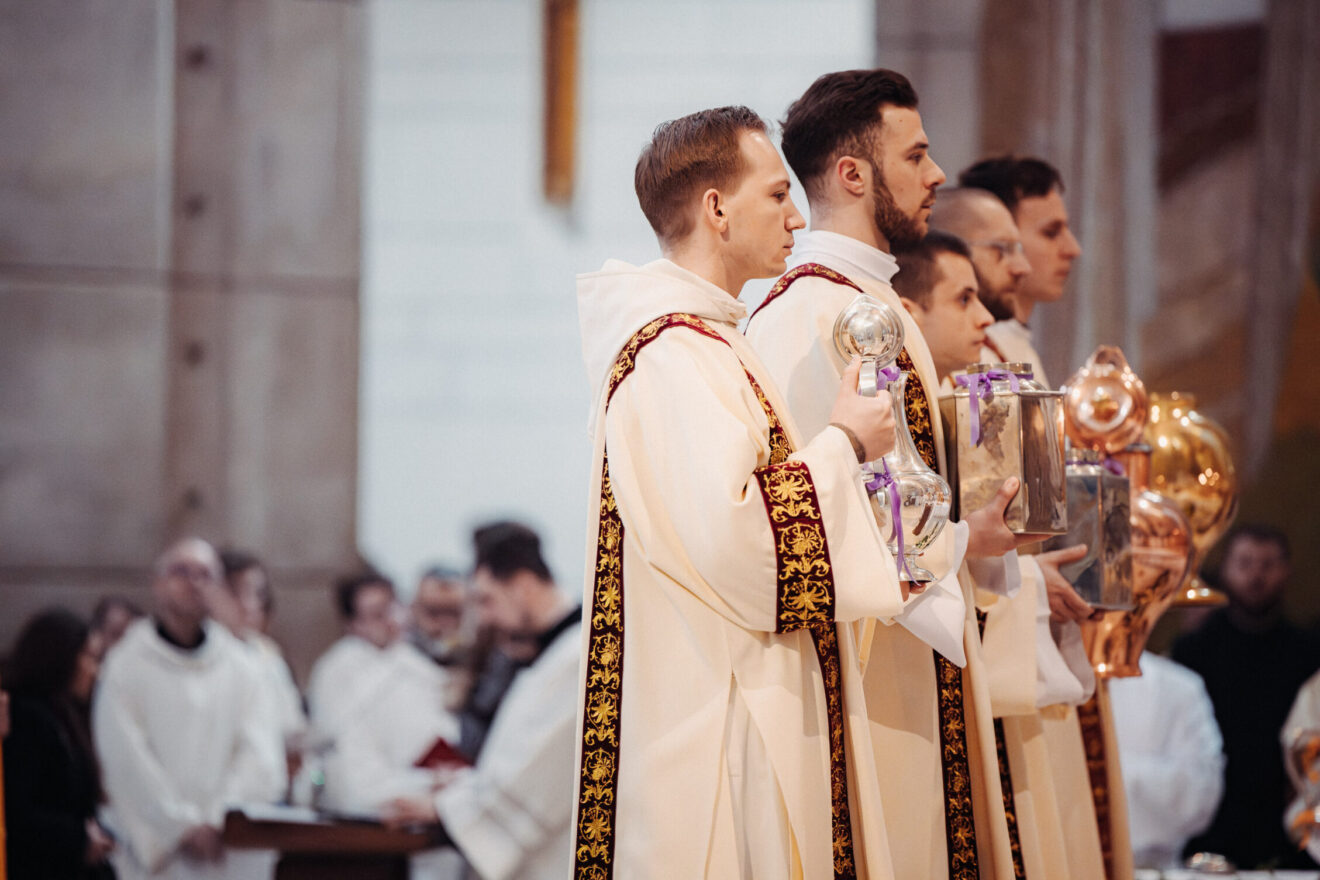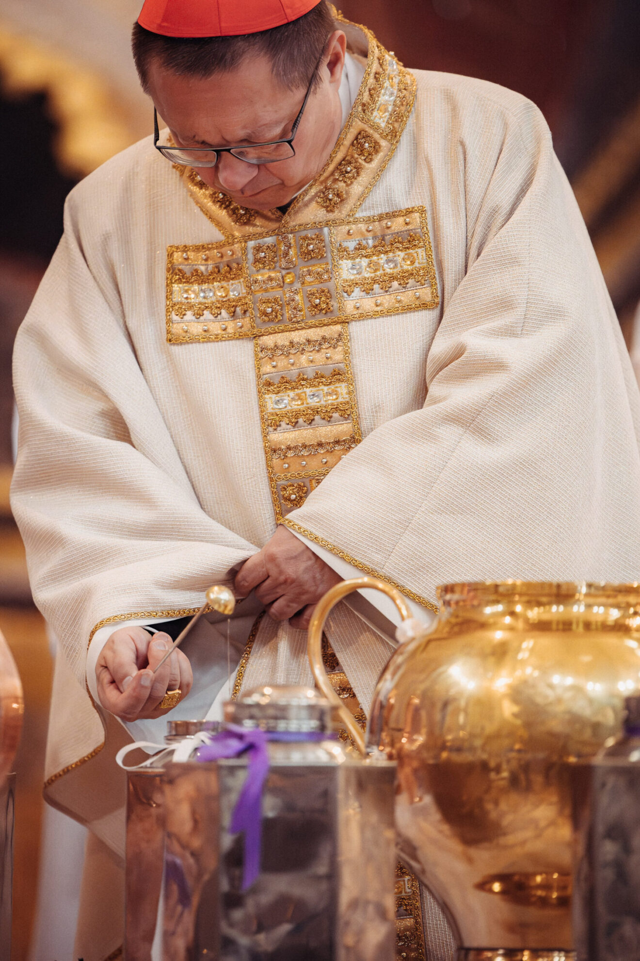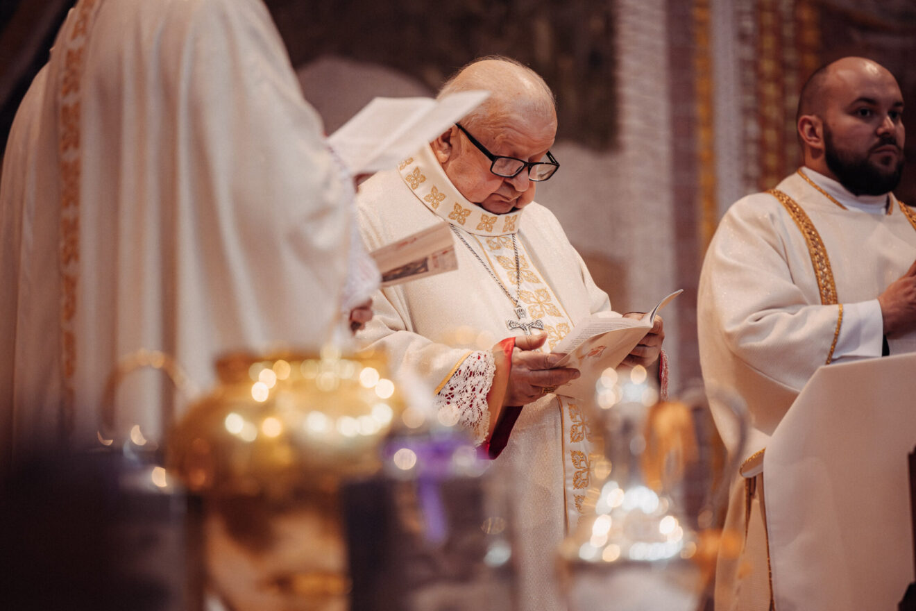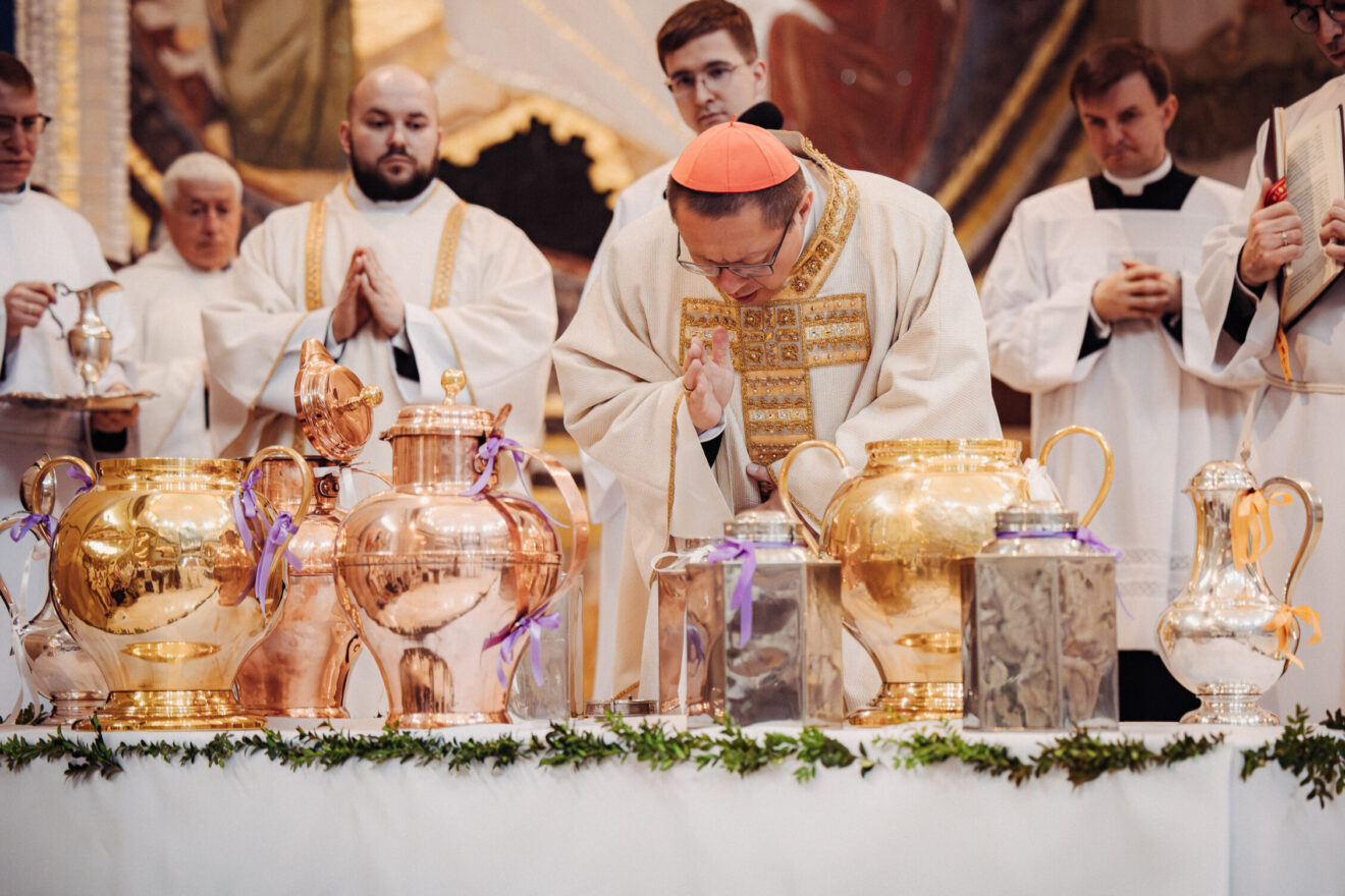 – Kościół jest pełny świata. Ale przychodzą święta paschalne, kiedy od nieporządku przechodzimy do porządku, kiedy od zła przechodzimy do dobra, od śmierci przechodzimy do życia, od braku miłości do miłości. To chcemy wybrać – tak rozumianą, tak przeżywaną misję Jezusową – podkreślał metropolita, zachęcając kapłanów do chwili ciszy, w której przygotują się modlitwą do Ducha do odnowienia przyrzeczeń kapłańskich. Zachęcił też młodych mężczyzn, aby słuchali tych przyrzeczeń. – Tam kluczowe jest pytanie: „Czy chcesz?”. Może akurat, kiedy będziecie słuchać tych słów, to Pan Jezus to chcenie rozpali w Was. A jak to zrobi, to już potem doprowadzi do spełnienia – zakończył.