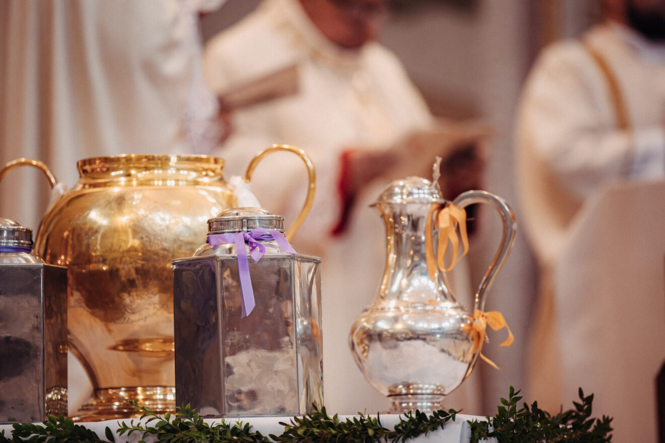 Po odnowieniu przyrzeczeń kapłańskich diakoni wnieśli uroczyście oleje. Olej chorych został pobłogosławiony przed obrzędami Komunii Świętej, a po nich – olej katechumenów oraz krzyżmo.