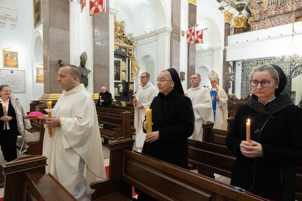 Fot. Krzysztof Stępkowski / Ordynariat PolowyŚwięto Ofiarowania Pańskiego przypadające 2 lutego w Kościele katolickim od 1997 r. jest także Dniem Życia Konsekrowanego. W intencji osób konsekrowanych m.in. sióstr pallotynek, pełniących posługę w Domu Biskupów Polowych przy ul. Długiej Mszę św. sprawował bp Wiesław Lechowicz. W czasie liturgii siostry Agnieszka, Elżbieta i Stanisława odnowiły swoje śluby zakonne.