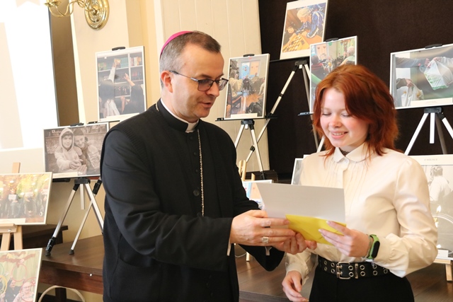 Po Mszy św. w Domu Parafialnym odbyło się spotkanie, podczas którego bp Damian Bryl wręczył nagrody laureatom konkursu fotograficznego zorganizowanego przez Caritas Diecezji Kaliskiej, w którym wzięło udział 25 uczniów.