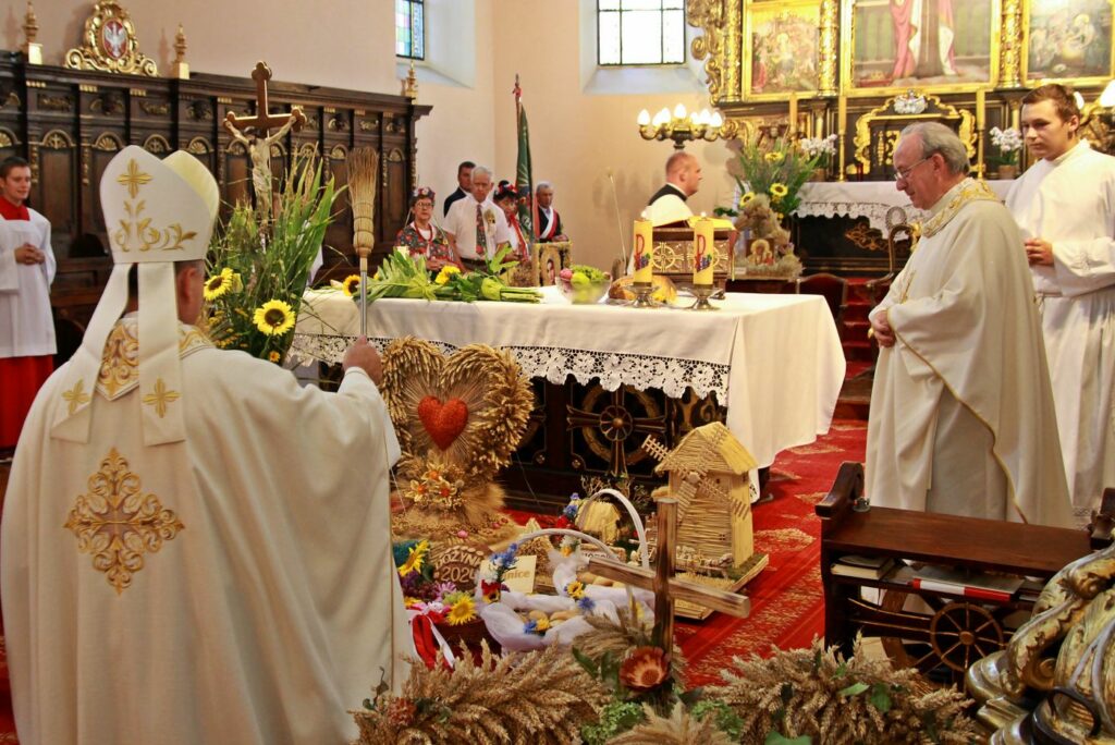 Biskup pomocniczy gnieźnieński przewodniczył w sobotę 31 sierpnia Mszy św. dziękczynnej za tegoroczne plony w kłeckim kościele pw. św. Jerzego i św. Jadwigi. Eucharystia z udziałem delegacji rolników oraz przedstawicieli władz samorządowych rozpoczęła wspólne dożynkowe świętowanie „na śląską nutę”.
