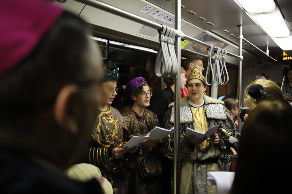 Fot. Biuro Prasowe Archidiecezji KrakowskiejŚwiąteczny tramwaj Miejskiego Przedsiębiorstwa Komunikacyjnego S.A. po raz piąty wyruszył na krakowskie ulicy. Z kolędującymi podróżnymi spotkał się bp Robert Chrząszcz.