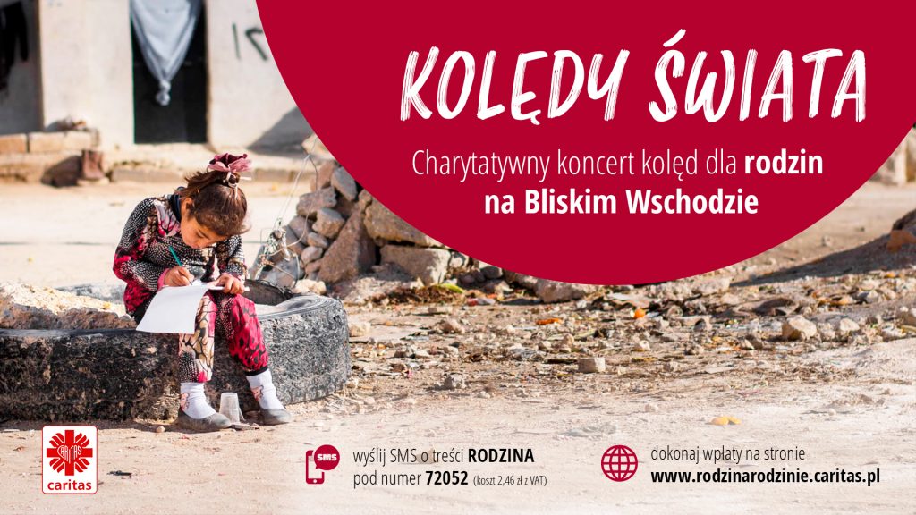 Dobrze znane w każdym polskim domu pieśni śpiewane w okresie bożonarodzeniowym, a także kolędy z Azji, Afryki i obu Ameryk, zaprezentują znani artyści. Wystąpią Olga Szomańska, Anna Karwan, Natalia Niemen, Kasia Cerekwicka, Kuba Badach, Mieczysław Szcześniak, Piotr Cugowski, Chór TGD pod kierownictwem Piotra Nazaruka oraz Małe TGD. Koncert będzie podziękowaniem dla polskich darczyńców, którzy przekazali dla blisko 10 tys. rodzin na Bliskim Wschodzie już ponad 58 mln zł. Dzięki tym środkom potrzebujące wsparcia rodziny z Syrii, Strefy Gazy, a o od tego roku także z Libanu i irackiego Kurdystanu, mogą sfinansować m.in. zakup żywności i leków. Podczas koncertu prowadzona będzie zbiórka SMS-owa, wpływy z niej zasilą program Rodzina Rodzinie.