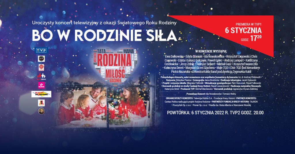 Organizatorami koncertu „Bo w rodzinie siła” są Telewizja Polska S.A. oraz Fundacja Kresy Historii. Partnerem wydarzenia jest Caritas Polska. Partnerzy Fundacji Kresy Historii to: TAURON, Pruszyński Sp. z o.o., Pronar Sp. z o.o., Parafia św. Brata Alberta w Warszawie Wesołej.