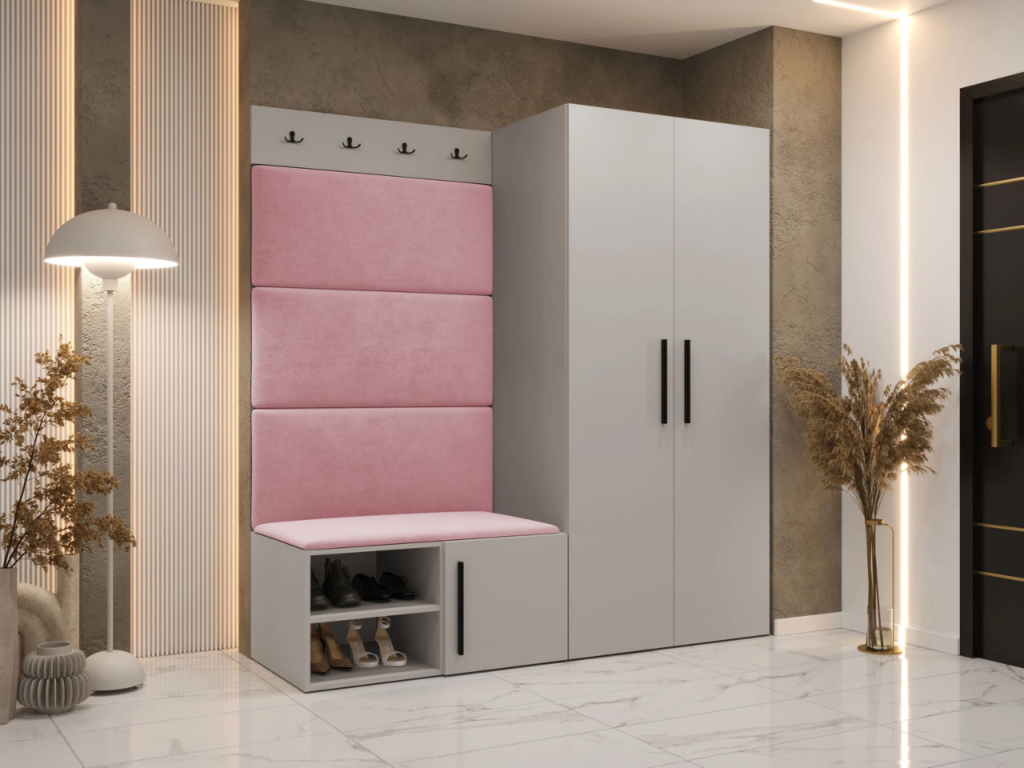 Świetną opcją zwłaszcza dla mieszkań w bloku jest garderoba ze ściennymi panelami tapicerowanymi. Oprócz pięknego wyglądy oferuje także wygodę i właściwości dźwiękochłonne.