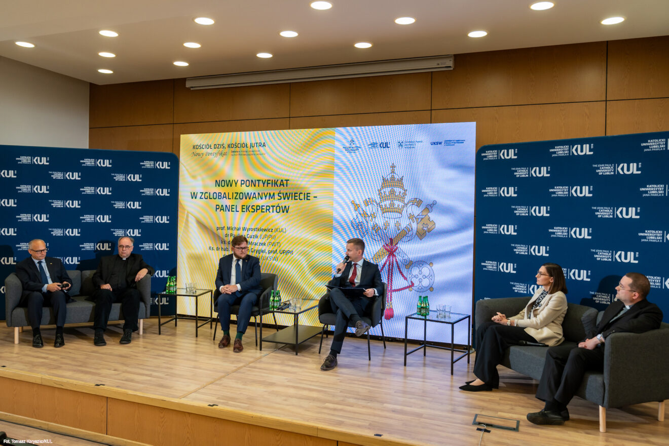 Pierwszy panel – „Nowy pontyfikat w zglobalizowanym świecie” skupił się na uwarunkowaniach, w jakich nowy papież rozpoczyna swoją posługę. W dyskusji udział wzięli m.in. dr hab. Michał Wyrostkiewicz (KUL), dr Paulina Guzik (UPJPII), ks. dr Michał Mraczek (PWT), ks. prof. Wojciech Grygiel (UPJPII) oraz dr Igor Kilanowski (UKSW). Rozmowa dotyczyła globalnych wyzwań dla Kościoła, czyli m.in. mówiono o zmniejszającej się liczbie wiernych.