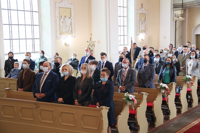 Fot. Ewa Kotowska-Rasiak/KAI– Niech ten sztandar będzie znakiem łączności i jedności wszystkich, który waszą szkołę tworzą – mówił bp Damian Bryl podczas Mszy św. w kościele pw. św. Augustyna w Kostowie. Biskup kaliski poświęcił sztandar szkoły upamiętniający Bohaterów Powstań Śląskich.
