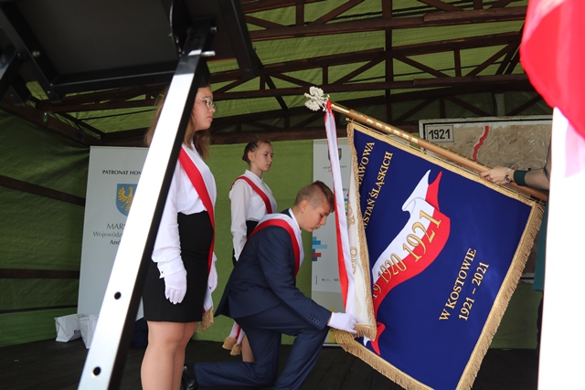 Druga część obchodów upamiętniających 100-lecie walk powstańczych na terenie Kostowa w trakcie III Powstania Śląskiego połączona z nadaniem pierwszego sztandaru Publicznej Szkole Podstawowej im. Bohaterów Powstań Śląskich w Kostowie obchodzącej 50. rocznicę nadania jej imienia odbyła się na placu szkolnym.