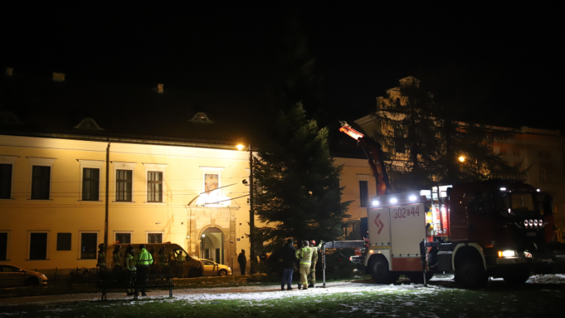 Drzewo pokonało ponad 100–kilometrową drogę, aby w nocy dotrzeć na Franciszkańską 3. Po wytężonej pracy służb, m.in.: strażaków z Komendy Miejskiej Państwowej Straży Pożarnej w Krakowie, kadetów ze Szkoły Aspirantów PSP w Krakowie, policjantów z Komendy Miejskiej Policji w Krakowie, Straży Miejskiej, inspektorów ruchu MPK, pracowników ZDMK, jak również leśników z Nadleśnictwa Dębica, choinka stanęła pod najbardziej znanym oknem w stolicy Małopolski.