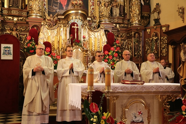 Wraz z bp. Damianem Brylem Mszę św. koncelebrowali: ks. prał. Aleksander Gendera, proboszcz bazyliki św. Jana Chrzciciela w Krotoszynie, ks. prał. Adam Modliński, poprzedni proboszcz i proboszczowie krotoszyńskich parafii.