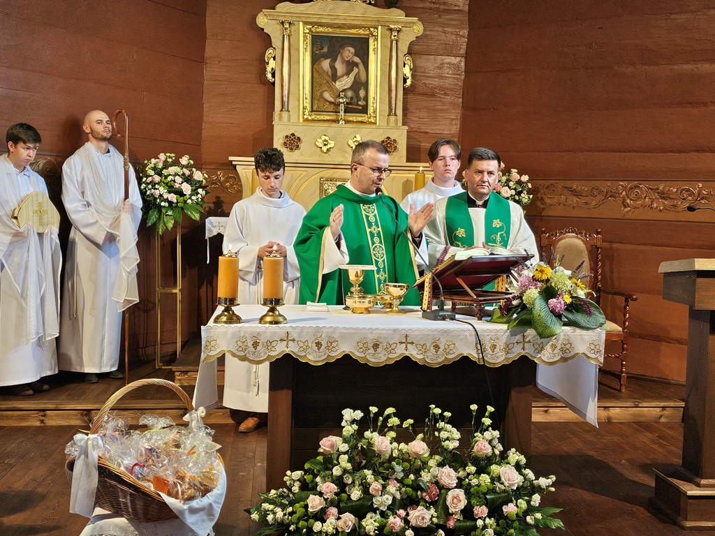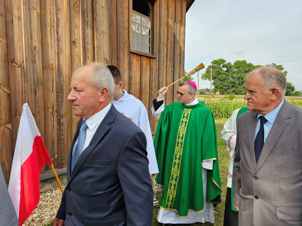 Fot. Ewa Kotowska-Rasiak/KAIOdnowiony drewniany kościół św. Marii Magdaleny w Krotoszynie poświęcił biskup kaliski Damian Bryl. 14 lat temu świątynia wybudowana w 1755 r. ucierpiała podczas pożaru.