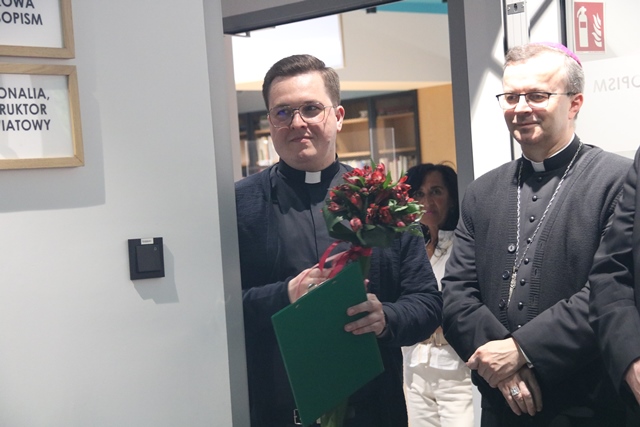 20 obrazów ks. Michała Ostafińskiego można oglądać do 30 czerwca w Krotoszyńskiej Bibliotece Publicznej im. Arkadego Fiedlera. – Ufamy, że te prace pomogą wszystkim zwiedzającym przeżyć coś ważnego, a przez to jeszcze bardziej odkryją oni Pana Boga i Jego dobroć – mówił biskup kaliski Damian Bryl, który uczestniczył w wernisażu.