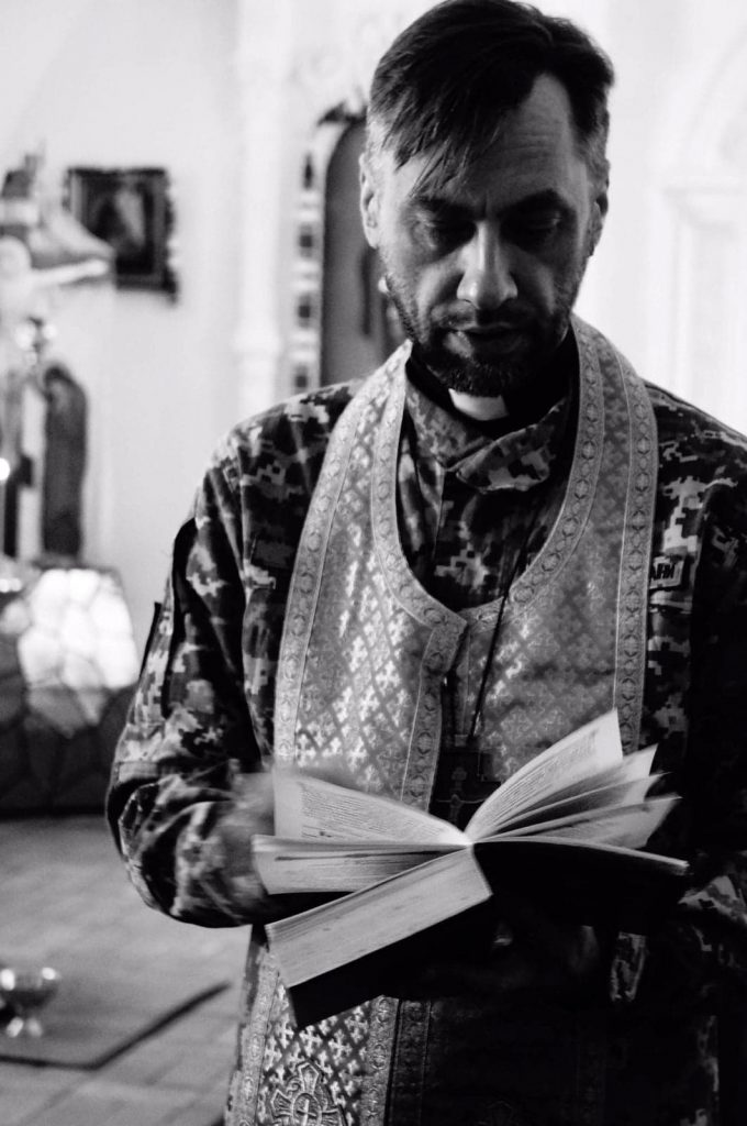 Ks. Siergiej Dmitriew jest szefem organizacji charytatywnej Eleos Prawosławnego Kościoła Ukrainy, a także kapelanem ukraińskiej armii.