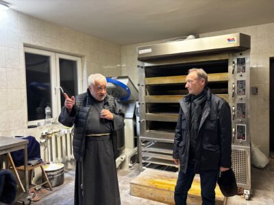 Bracia Albertyni z Polski prowadzą w Zaporożu ośrodek dla bezdomnych. Mają teraz około trzydziestu mężczyzn, którzy tam znaleźli schronienie. Przy schronisku zakonnicy otworzyli profesjonalną piekarnię i przy pomocy wolontariuszy pieką ponad 1200 wspaniale pachnących i smakujących cudownie bochenków chleba. Cztery razy w tygodniu, w pobliżu Sanktuarium Boga Ojca jest on rozdawany potrzebującym. Po raz kolejny miałem okazję być razem z braćmi przy dystrybucji chleba. Dla mnie było to wręcz szokujące. Było wtedy minus 15 stopni Celcjusza i w kolejce stanęło ok. 2 tys. Nie dziwiłbym się gdyby rozdawano jakieś obfite paczki, a był to tylko bochenek chleba, konserwa mięsna, ewentualnie lizak czy czekoladka dla dzieci. Dzieci ze swoimi mamami czy babciami w tej kolejce również stały. Rozmawiałem z ludźmi, pytając m. in. dlaczego tak licznie przybyli, przecież tu nic wielkiego nie ma, tym bardziej, że nieopodal jest sklep, w którym wszystko można kupić. Większość z nich odpowiadała pytaniem: ale za co? My mamy wybór, albo kupić lekarstwa, albo opłacić media, albo coś zjeść. Jeżeli jest okazja gdziekolwiek, cokolwiek dostać, to tam idziemy. Dlatego stoją po dwie, trzy godziny na mrozie w kolejce, żeby otrzymać bochenek chleba.
