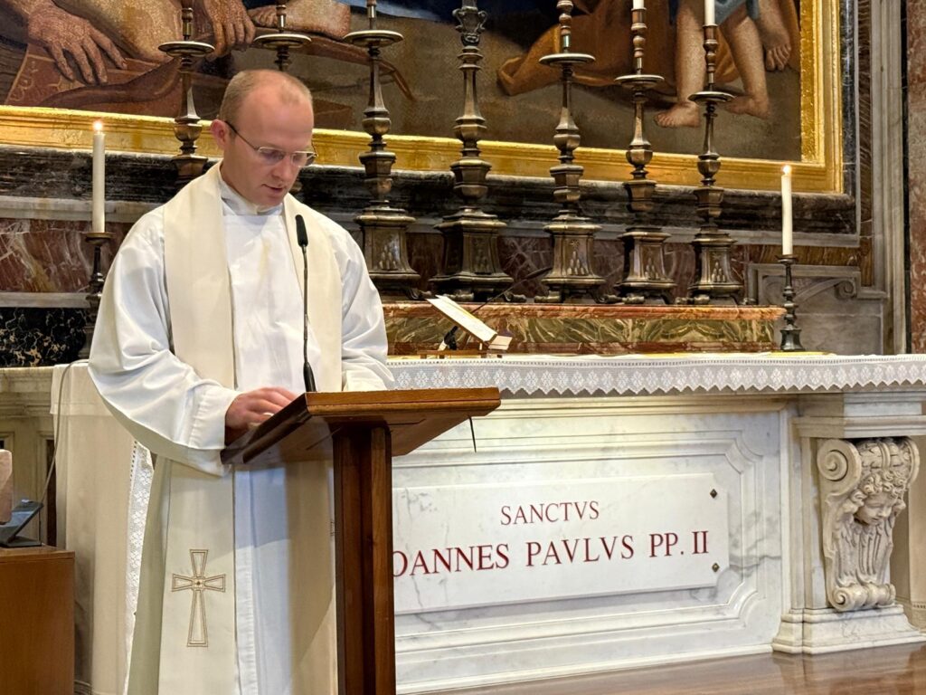 Fot. ks. Paweł Rytel-Andrianik / Vatican NewsMy jako chrześcijanie bardzo potrzebujemy tych cmentarnych katechez, tych pytań o śmierć i życie, bo one mają brzmieć i nieść się w świecie, który chciałby o nich zapomnieć, jak dźwięk dzwonu, bijącego radośnie na niedzielną sumę, a jakoś rzewniej i smutniej, gdy z kościoła wyprowadzana jest trumna – wskazał w homilii ks. Wojciech Kućko podczas Mszy św. przy grobie św. Jana Pawła II w Bazylice Watykańskiej.