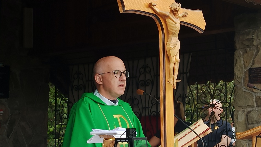 „Jesteśmy tu dzisiaj, w niezwykle uprzywilejowanym miejscu, gdzie możemy uciec od zgiełku, otworzyć się na mówienie Boga. Nie bójmy się tej ciszy gór, majestatu gór, tej ciszy, która tutaj panuje. To jest właśnie okazja, aby wyciszyć inne głosy i otworzyć się na głos samego Boga. To także okazja, aby odnowić w sobie język Boży, język mówienia o sprawach Bożych i świadectwa” – wezwał.