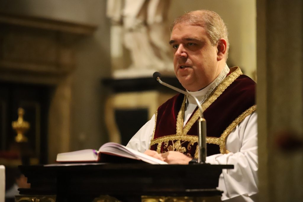 Fot. Biuro Prasowe Archidiecezji Krakowskiej– Był, jest i pozostanie dla mnie wielkim prorokiem. Jest to wielkość, która nie pochodzi od człowieka. Jest to wielkość – jak w przypadku każdej świętości – glinianego naczynia, które Bóg wybiera i wypełnia swoją łaską, żeby nie z nas, ale z Niego była owa przeogromna łaska, przeogromna moc, która przemienia świat – mówił ks. prof. Robert Woźniak w czasie liturgii stacyjnej w kolegiacie św. Anny w Krakowie.