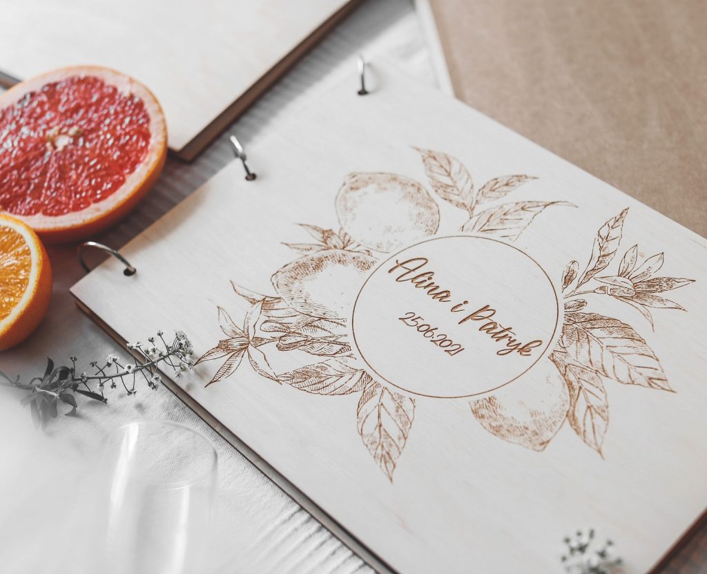 Spersonalizowana księga gości daje nam możliwość wygrawerowania na drewnianej okładce imion, daty ślubu a nawet wybranej przez parę młodą grafiki symbolizującej ich miłość. Drewniana okładka świetnie i na wiele lat chroni umieszczone wewnątrz kartki z cennymi wspomnieniami przed pogięciem i zniszczeniem. We wnętrzu pamiątkowej księgi gości możemy umieścić białe, eko lub czarne kartki, które na wiele lat pozwolą parze młodej zachować wzruszające i zabawne wspomnienia z dnia rozpoczynającego nową drogę w ich życiu.