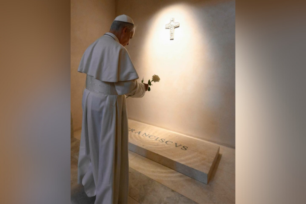 Ostatni uśmiech skierowany do zgromadzonych, po czym Papież Leon skierował spojrzenie ku niszy, w której gra świateł rozświetla krzyż Dobrego Pasterza – ten sam, który Jorge Mario Bergoglio nosił na piersi przez ponad dwanaście lat swojego pontyfikatu. Współpracownik podał Ojcu Świętemu różę, którą ten, klękając, położył po prawej stronie marmuru. Następnie – wciąż klęcząc, w ciszy, której przestrzegali również wszyscy obecni w bazylice – modlił się przez kilka minut, z głową pochyloną i rękami złożonymi do modlitwy.