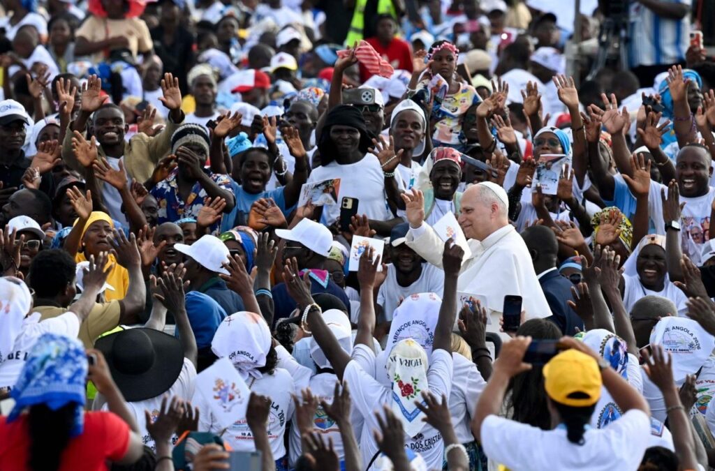 Fot. Vatican Media„To miłość musi zwyciężać, a nie wojna!” – powiedział Leon XIV w narodowym sanktuarium maryjnym w Muximie w Angoli. Papież odmówił ze zgromadzonymi część chwalebną Różańca Świętego.