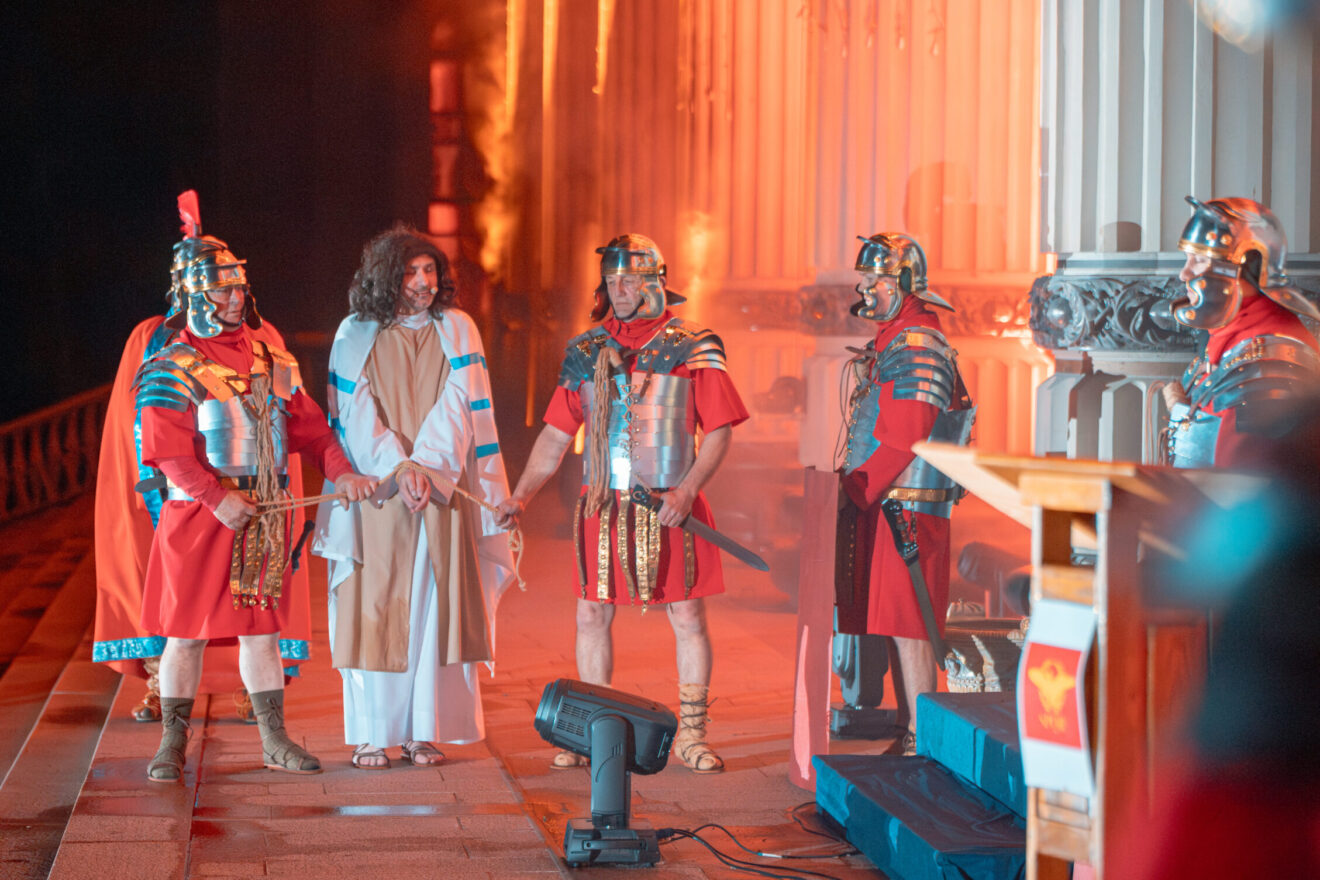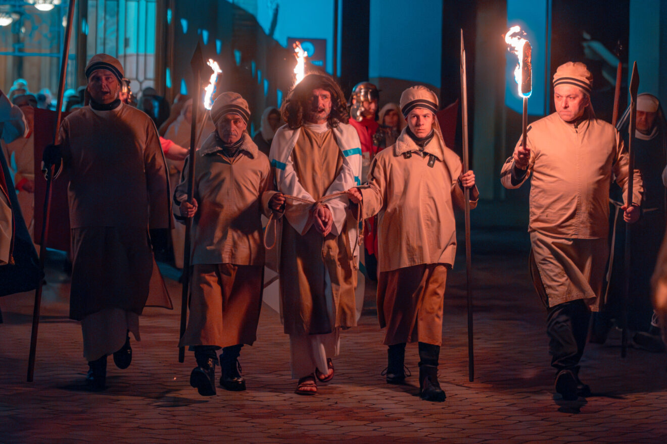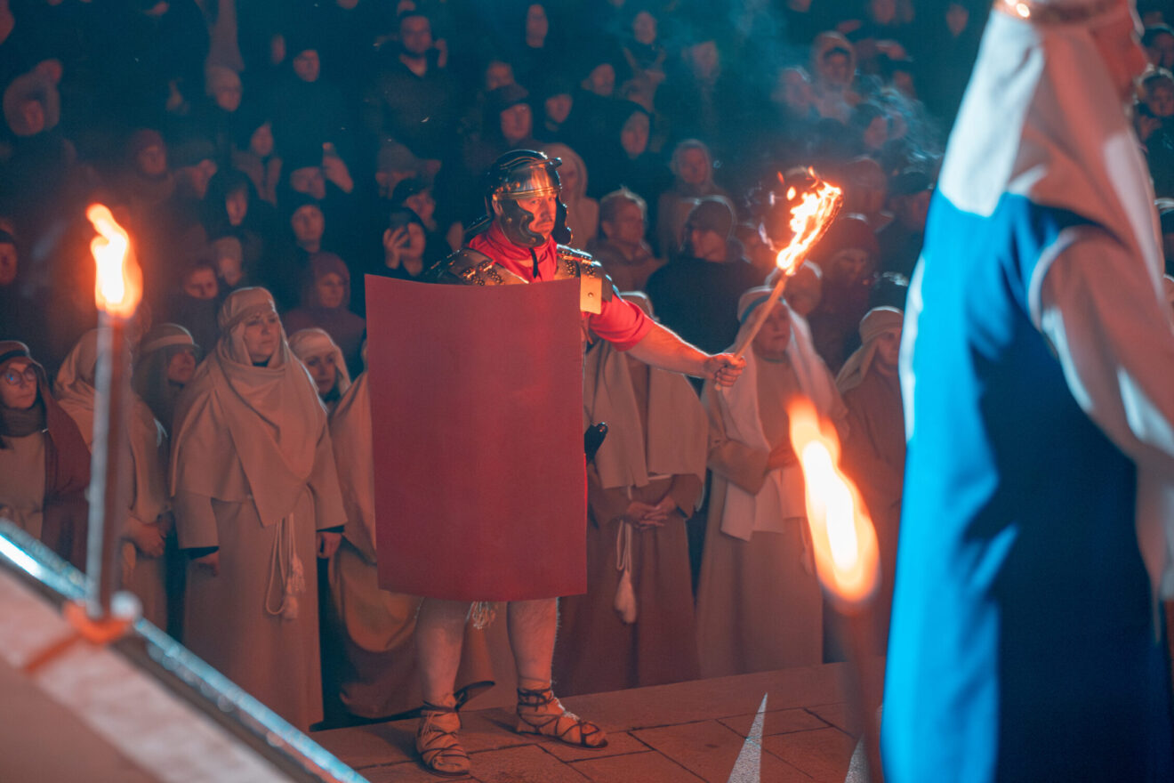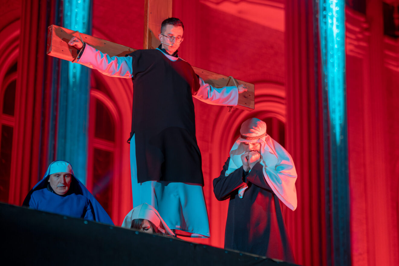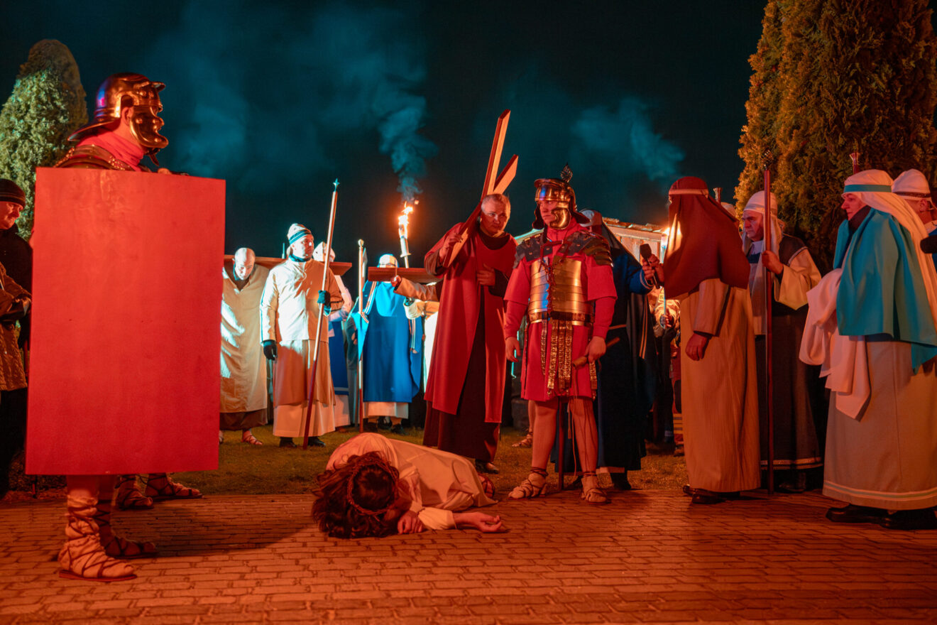 Plac przed świątynią już przed rozpoczęciem przedstawienia wypełniła atmosfera skupienia. Uczestnicy byli świadkami kolejnych etapów ostatnich chwil ziemskiego życia Jezusa – od Ostatniej Wieczerzy, przez modlitwę w Ogrójcu, proces i drogę krzyżową, aż po śmierć na Golgocie i poranek Zmartwychwstania. Sceny ukazano z dbałością o przekaz Ewangelii oraz emocjonalny wymiar wydarzeń.