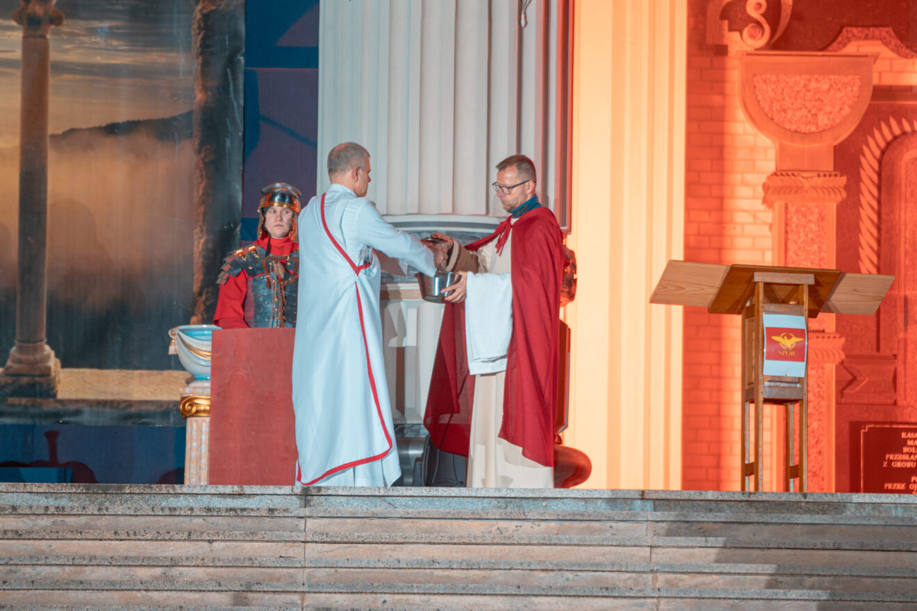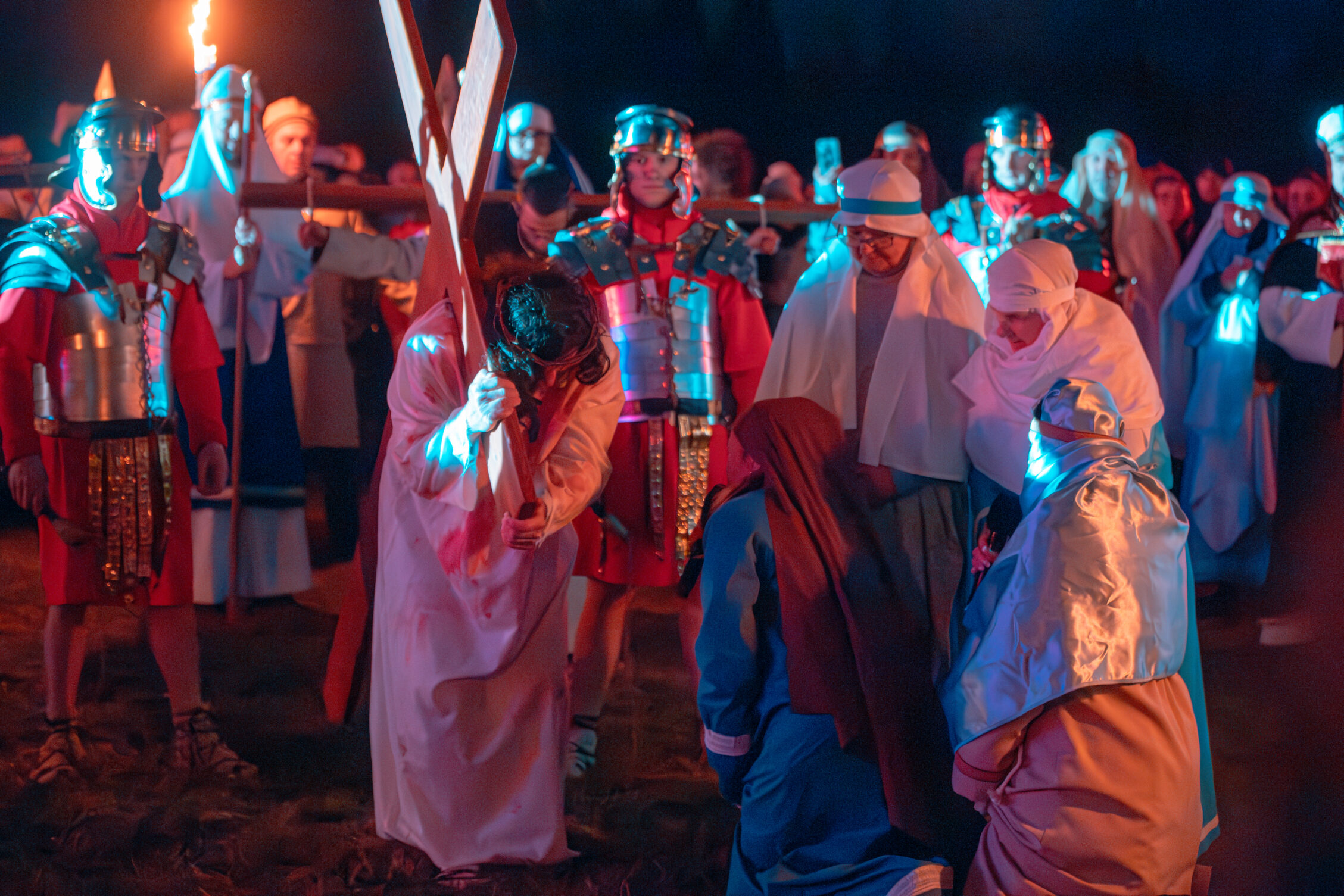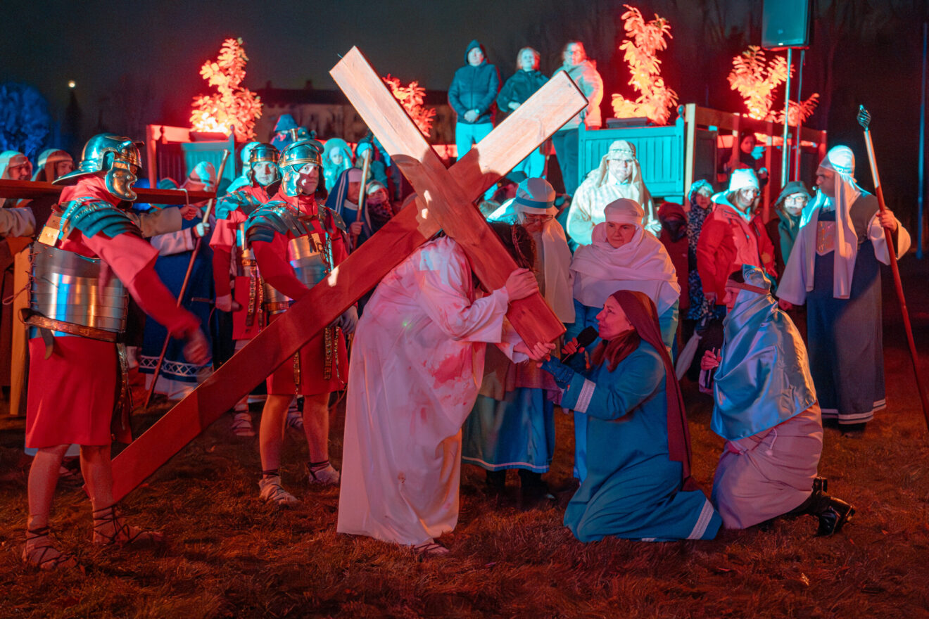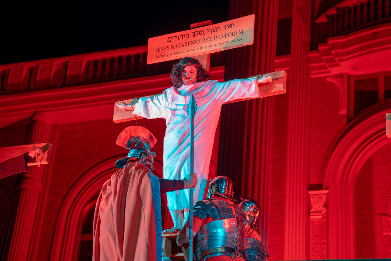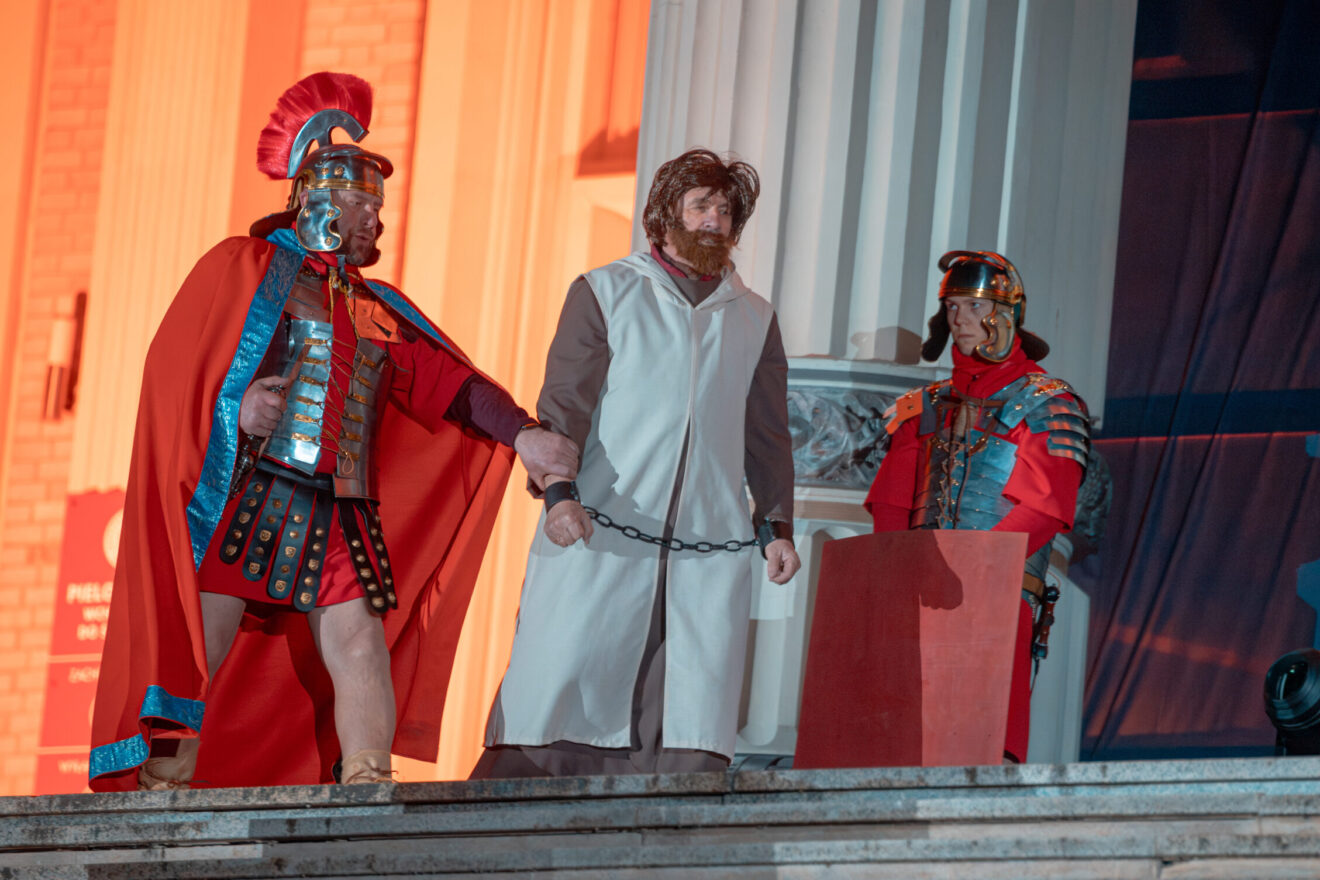 Plac przed świątynią już przed rozpoczęciem przedstawienia wypełniła atmosfera skupienia. Uczestnicy byli świadkami kolejnych etapów ostatnich chwil ziemskiego życia Jezusa – od Ostatniej Wieczerzy, przez modlitwę w Ogrójcu, proces i drogę krzyżową, aż po śmierć na Golgocie i poranek Zmartwychwstania. Sceny ukazano z dbałością o przekaz Ewangelii oraz emocjonalny wymiar wydarzeń.