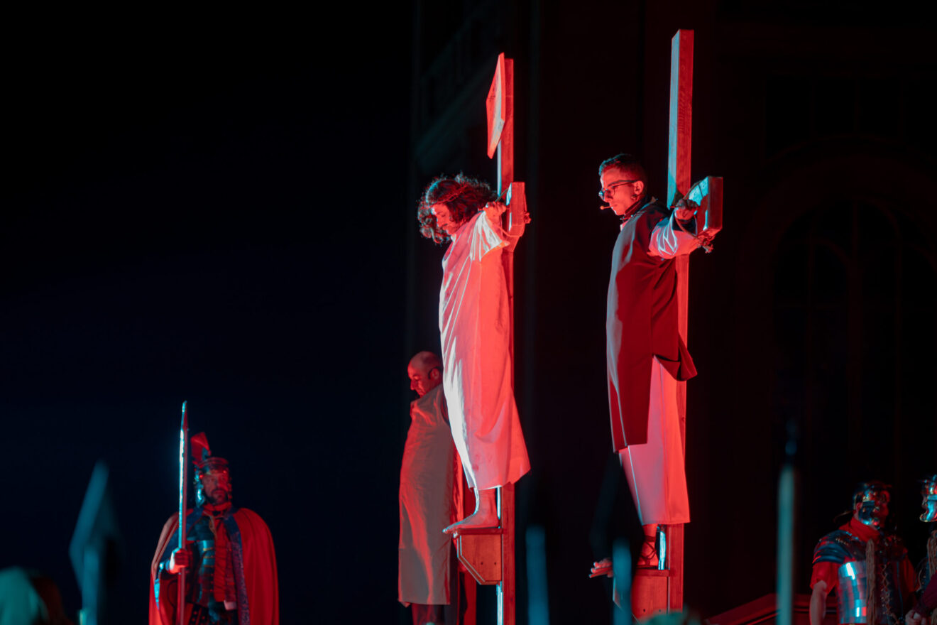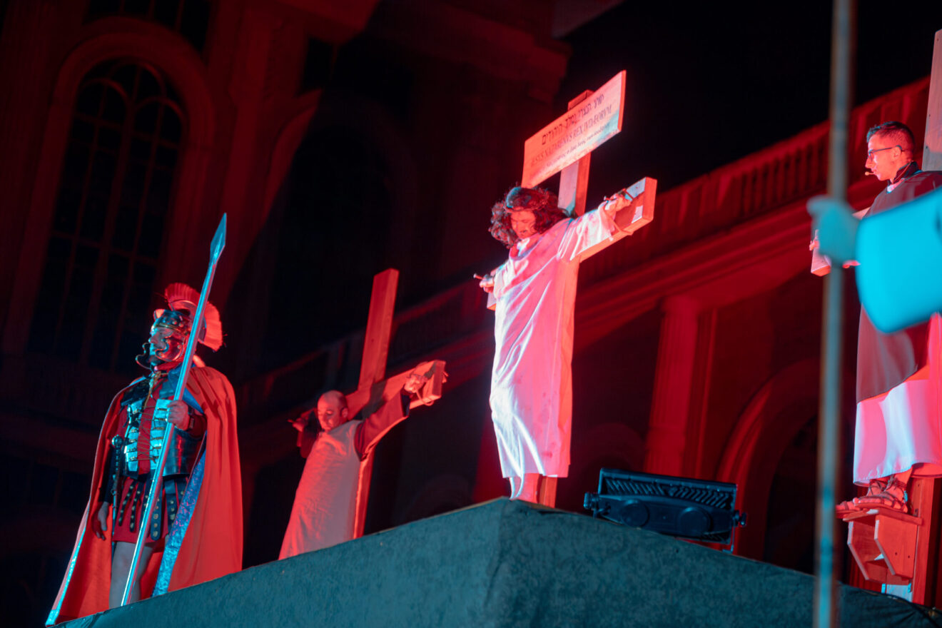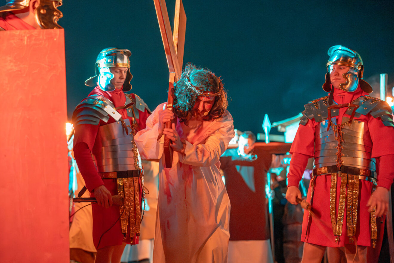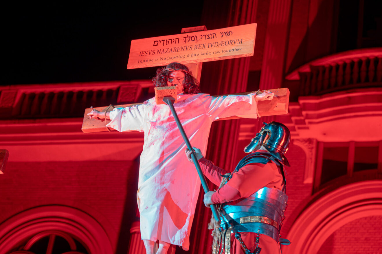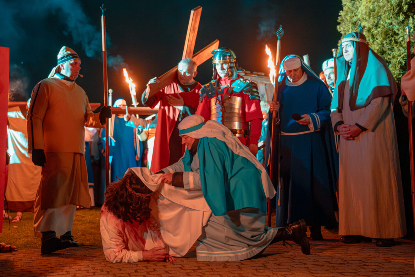 Plac przed świątynią już przed rozpoczęciem przedstawienia wypełniła atmosfera skupienia. Uczestnicy byli świadkami kolejnych etapów ostatnich chwil ziemskiego życia Jezusa – od Ostatniej Wieczerzy, przez modlitwę w Ogrójcu, proces i drogę krzyżową, aż po śmierć na Golgocie i poranek Zmartwychwstania. Sceny ukazano z dbałością o przekaz Ewangelii oraz emocjonalny wymiar wydarzeń.