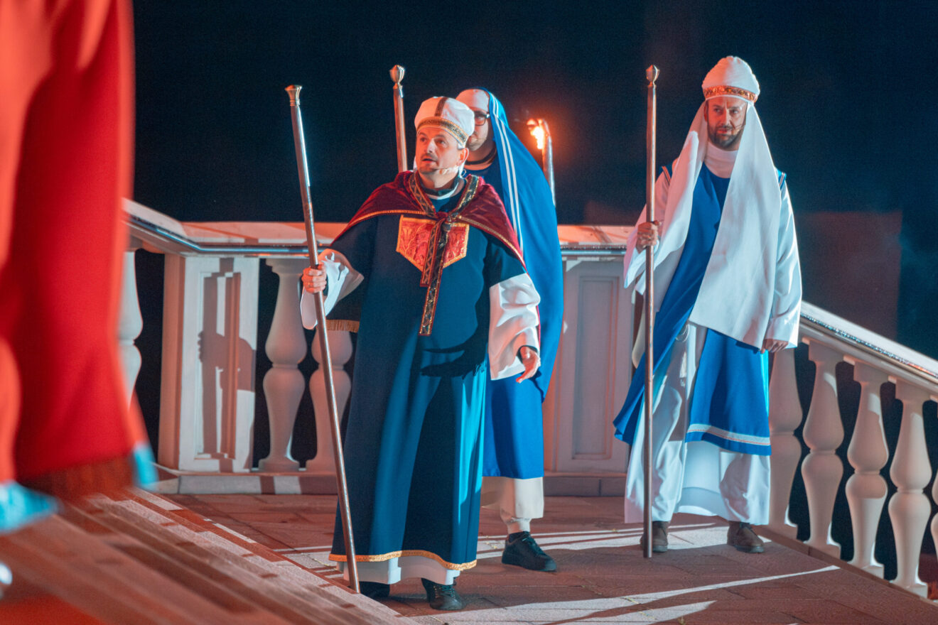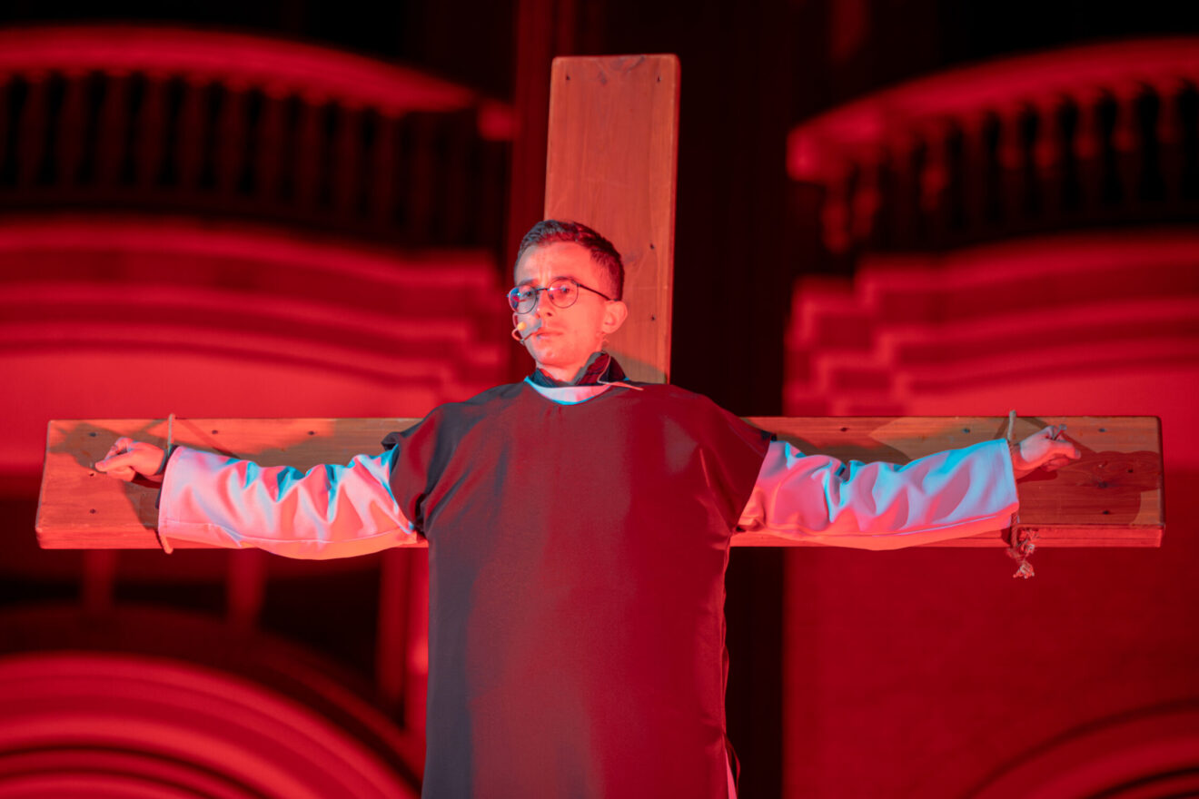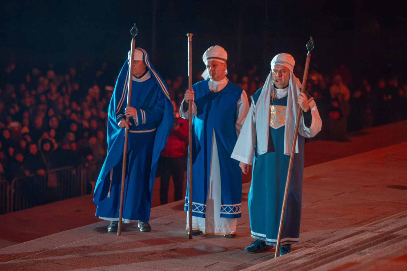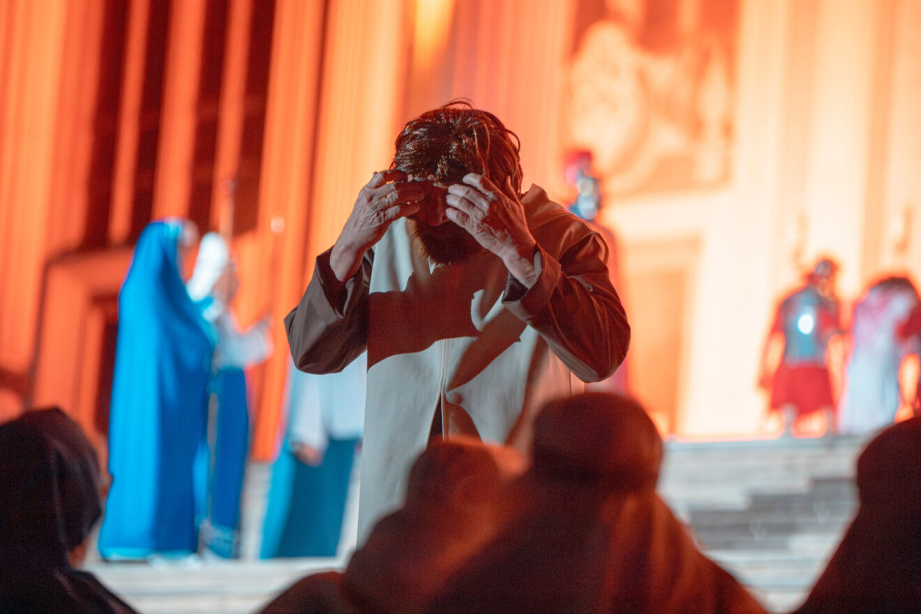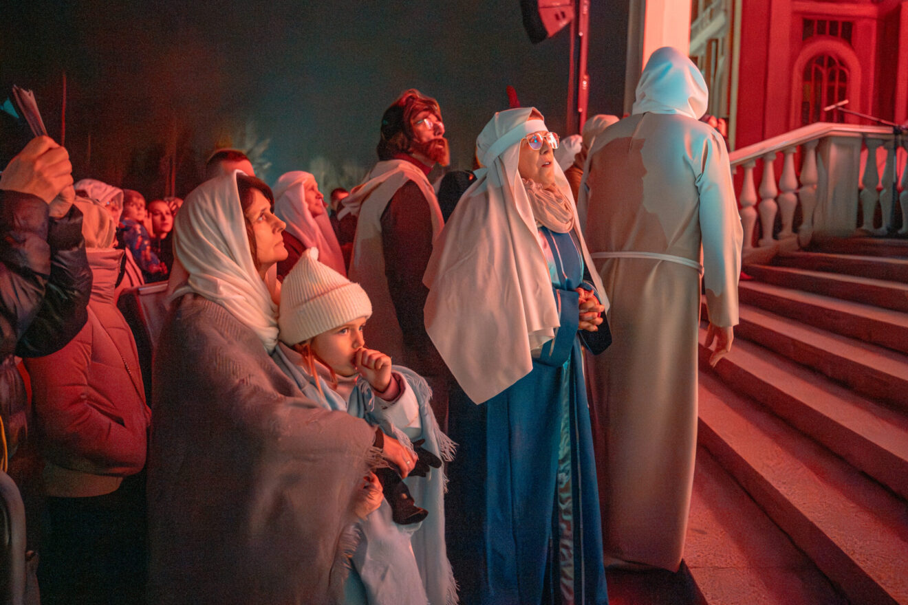 Plac przed świątynią już przed rozpoczęciem przedstawienia wypełniła atmosfera skupienia. Uczestnicy byli świadkami kolejnych etapów ostatnich chwil ziemskiego życia Jezusa – od Ostatniej Wieczerzy, przez modlitwę w Ogrójcu, proces i drogę krzyżową, aż po śmierć na Golgocie i poranek Zmartwychwstania. Sceny ukazano z dbałością o przekaz Ewangelii oraz emocjonalny wymiar wydarzeń.