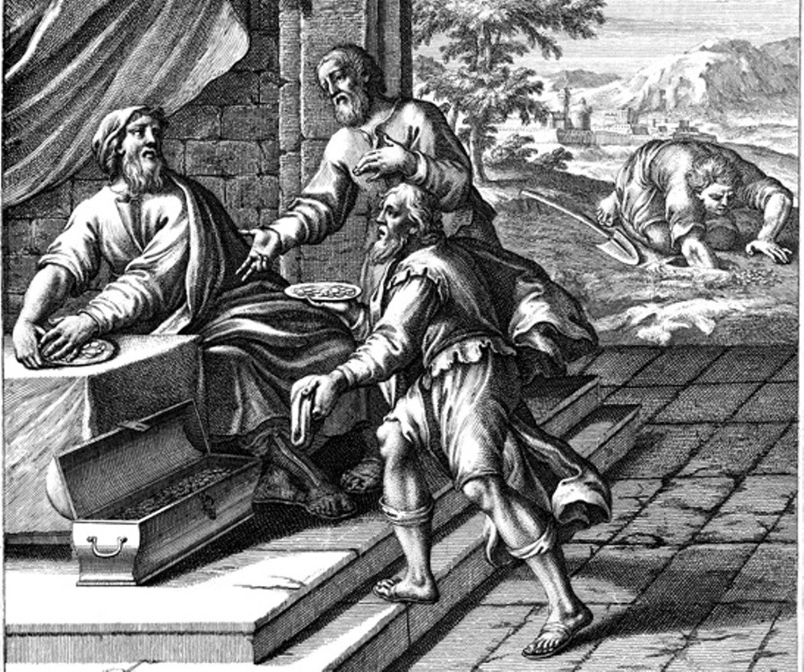 Przypowieść o talentach na drzeworycie z 1712, fot. Wikipedia