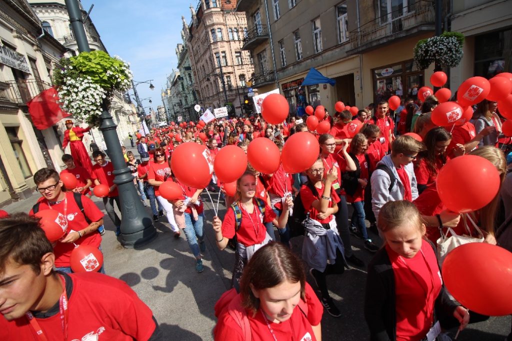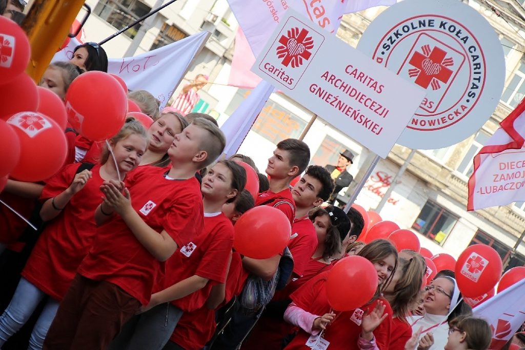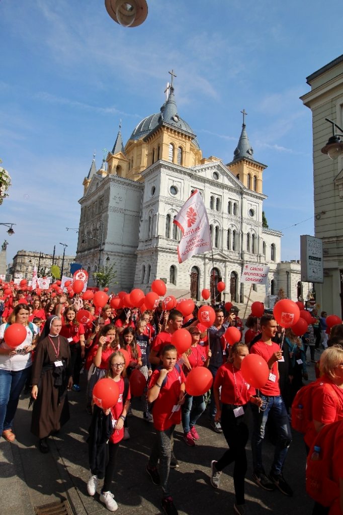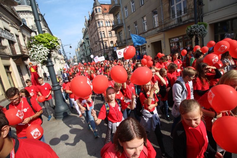 Fot. ks. Paweł KłysW niedzielne przedpołudnie główną ulicą Łodzi przeszedł marsz blisko półtora tysiąca młodych, którzy przyjechali w sobotę na pierwszy ogólnopolski zjazd Szkolnych Kół Caritas, który w dniach 9-10 września odbył się w Łodzi.