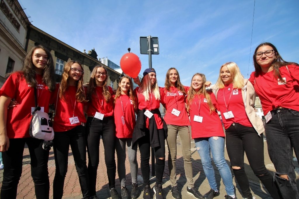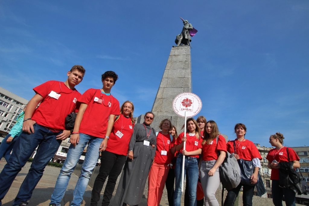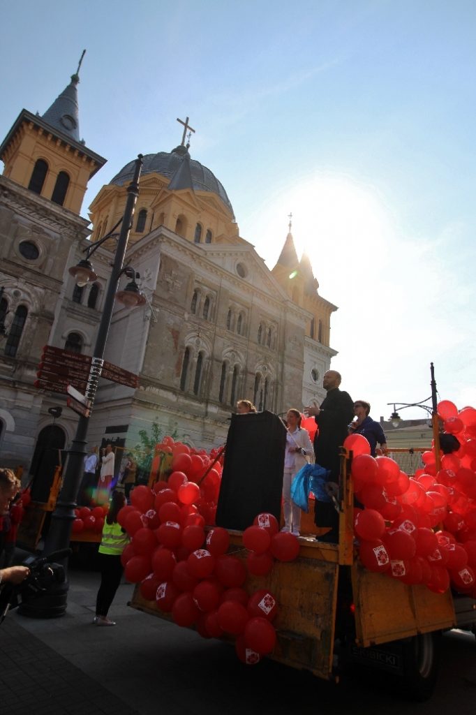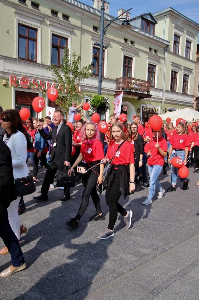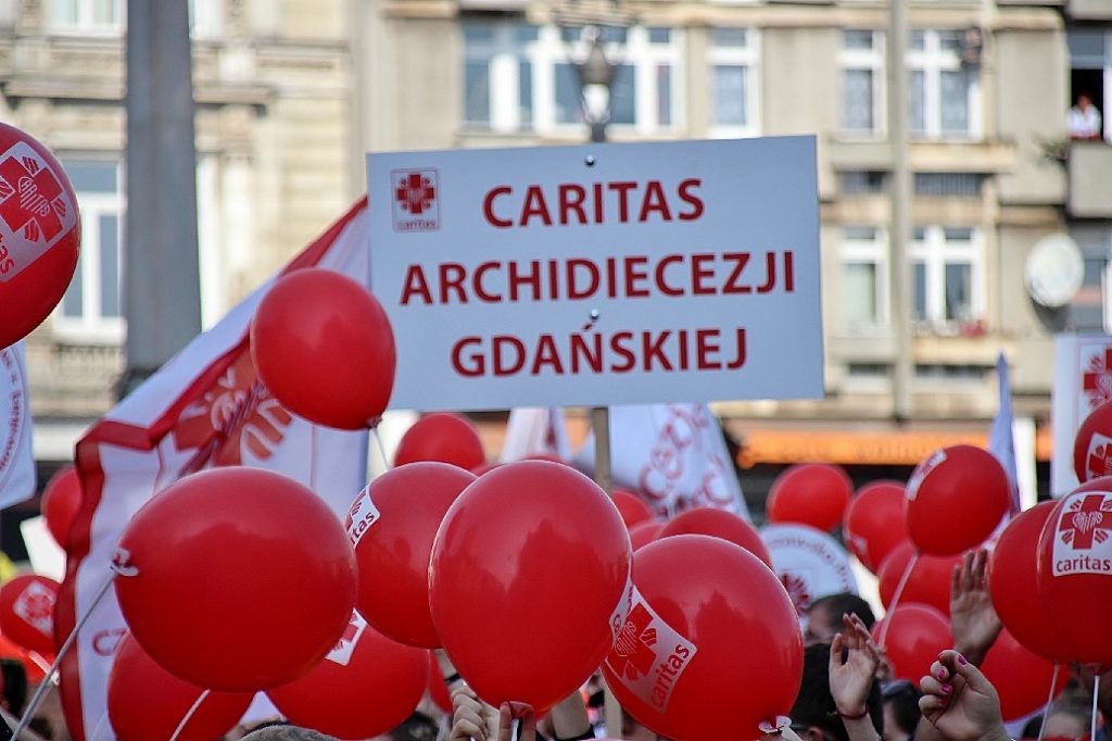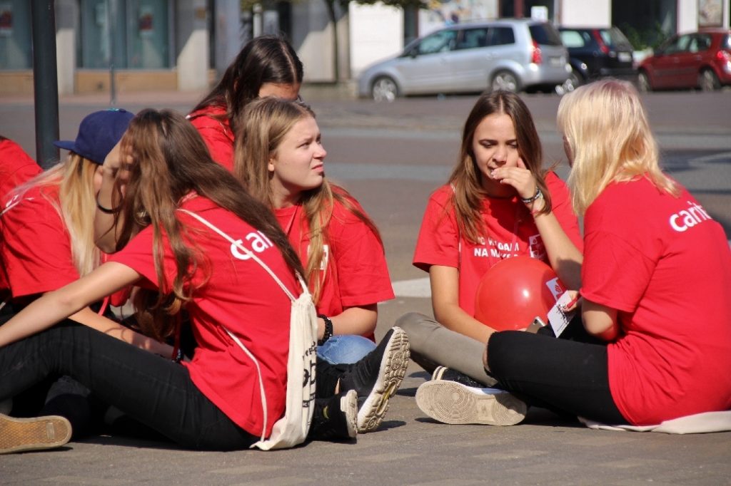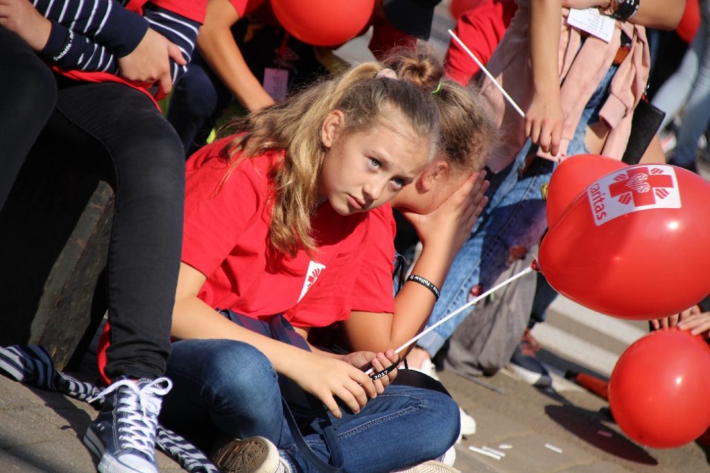 Młodzi ubrani w czerwone koszulki z napisem „Caritas”, niosąc czerwone balony i transparenty przeszli ulicą Piotrkowską, śpiewając i tańcząc przy akompaniamencie jezuickiego zespołu „Mocni w Duchu”, działającego przy ośrodku Odnowy w Duchu Świętym w Łodzi.