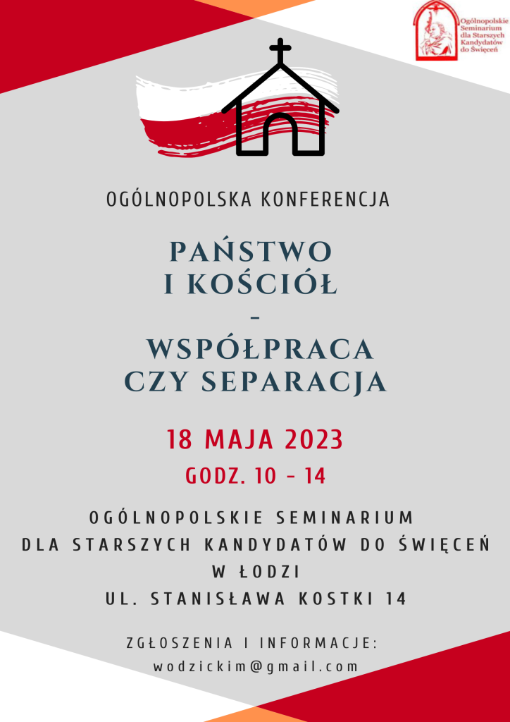 Materiały prasowe„Państwo i Kościół – współpraca czy separacja” – pod tym hasłem 18 maja 2023 r. odbędzie się w Łodzi ogólnopolska konferencja naukowa organizowana przez Ogólnopolskie Seminarium dla Starszych Kandydatów do Święceń. „Czy człowiek jest także drogą państwa, zasadniczą racją jego poczynań? A zatem współpraca czy separacja? W czym rozdział, słuszna autonomia, w czym zaś współpraca, pomocniczość” – zapowiada tematykę wystąpień naukowców z całej polski rektor seminarium, ks. dr hab. Sławomir Szczyrba.