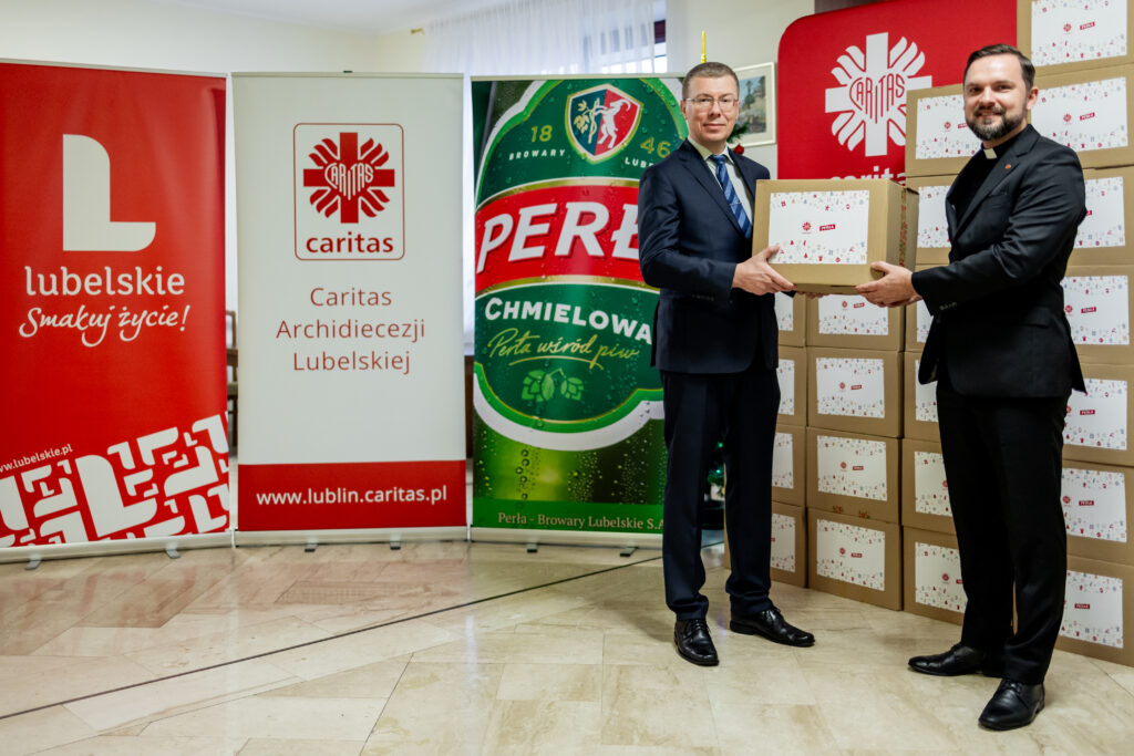 – Przywieźliśmy ze sobą 400 paczek żywnościowych z produktami o długim terminie przydatności. Znalazły się w nich podstawowe artykuły potrzebne w każdej kuchni, jak m.in. ryż, makaron, olej , kasza, konserwy, choć z uwagi na zbliżające się święta nie zabrakło w nich również słodkiego akcentu. Przekazujemy je na ręce dyrektora lubelskiej Caritas z myślą o podopiecznych tej instytucji, a więc osobach, które znajdują się w szczególnie trudnej sytuacji – mówi Maciej Ładwiński, Dyrektor ds. Marketingu Perła – Browary Lubelskie S.A. – Warto wspomnieć, że od początku współpracy Perły i Caritas już kilka tysięcy mieszkańców Lublina i okolicznych miejscowości otrzymało przygotowane przez nas dary. Dzięki pracownikom i wolontariuszom Caritas trafiają one do tych, którzy takiej pomocy bardzo potrzebują. Cieszymy się, że możemy wesprzeć te osoby w konkretnej, wymiernej formie i że w ten sposób lubelski browar może pomagać Caritas pomagać innym – podkreśla dyr. Maciej Ładwiński.