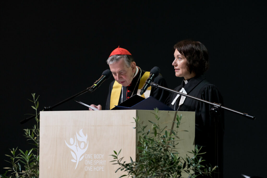 Fot. The Lutheran World Federation/FacebookSekretarz generalna Światowej Federacji Luterańskiej (ŚFL), ks. dr Anne Burghardt, oraz kardynał Kurt Koch, prefekt Dykasterii ds. Jedności Chrześcijan przedstawili „Wspólne słowo” na Trzynastym Zgromadzeniu Ogólnym Światowej Federacji Luterańskiej, które skończyło się 19 września w Krakowie.