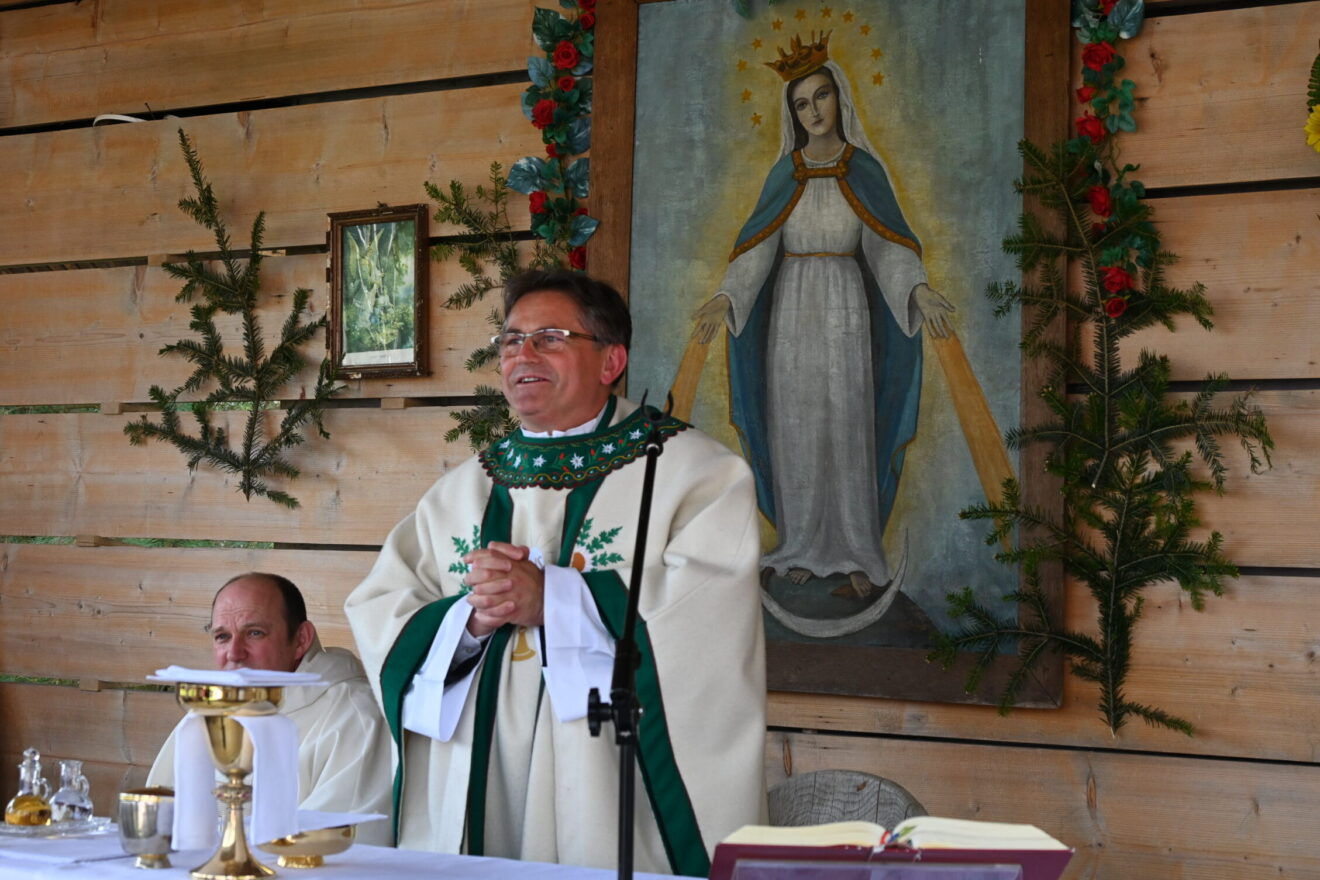 Uroczystą Mszę św. w kaplicy na Tarasówce, skąd rozpościera się piękny krajobraz na Tatry, odprawił ks. dr Dariusz Guziak, proboszcz parafii pw. Marii Magdaleny w pobliskim Poroninie. – Bardzo dziękuję za zaproszenie w to niezwykłe miejsce, gdzie jesteśmy otoczeni górskimi szczytami. Dziś nasza tradycja, kultura łączy się z wiarą – mówił ks. Guziak.