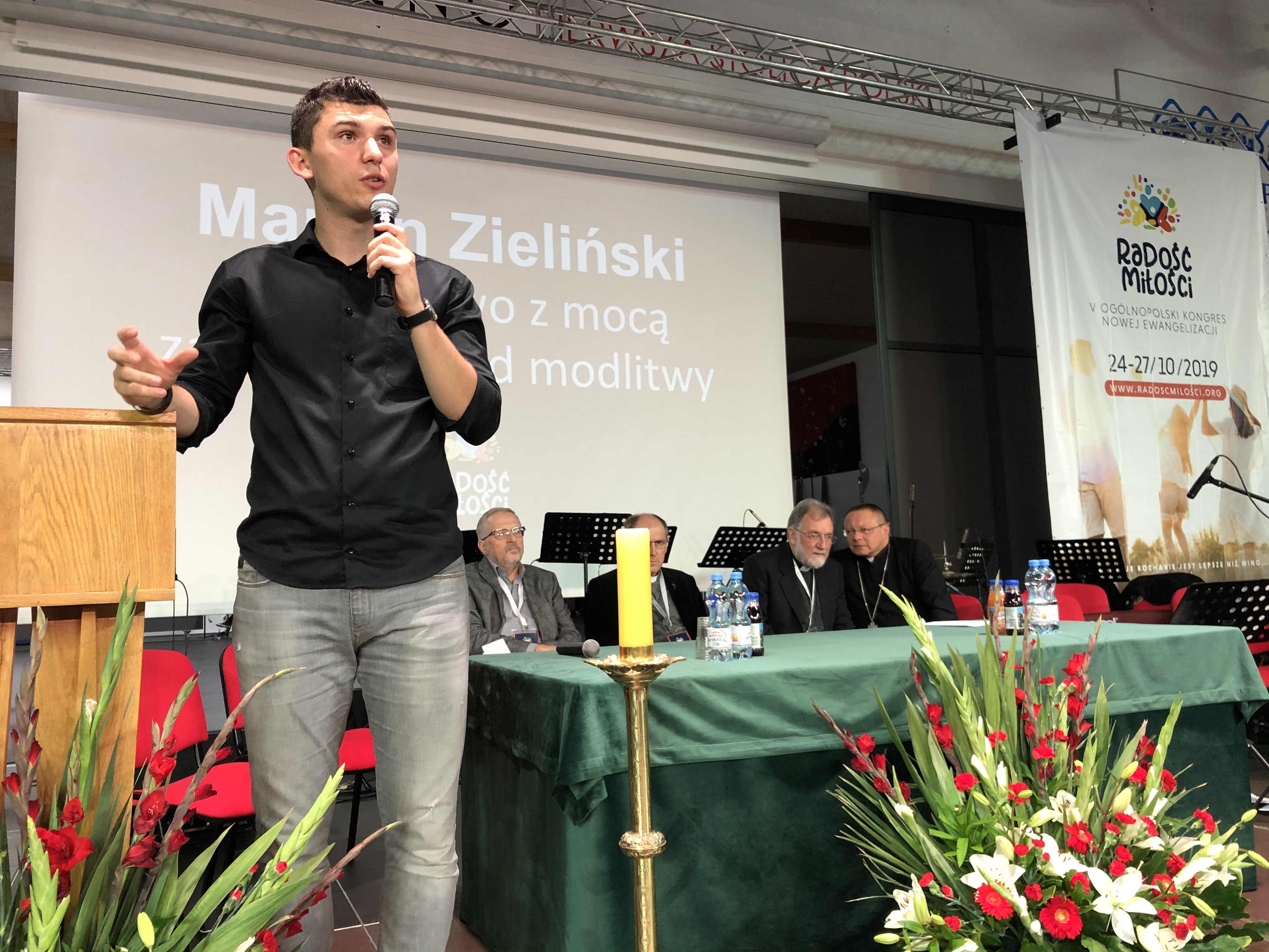 Sobotni blok konferencji V Kongresu Nowej Ewangelizacji w Gnieźnie otworzył Marcin Zieliński. Lider wspólnoty Głos Pana ze Skierniewic zwrócił uwagę na rolę osobistej relacji z Panem Bogiem w życiu ewangelizatora. Podkreślił, że modlitwa musi nas kosztować – czas, energię, wysiłek. „Kiedy zaczynasz Bogu składać ofiarę z siebie to znaczy, że twoje życie duchowe idzie w dobrym kierunku i rozwija się. Jeśli cię to nie kosztuje, to znaczy, że jeszcze się nie modlisz” – mówił i zwracał uwagę na konieczność równowagi między budowaniem osobistej relacji z Bogiem a praktycznym ewangelizowaniem. „Kiedy zaczniesz mieć większą satysfakcję z tego, co robisz dla Boga niż z tego, że z Nim jesteś, to szybko się wypalisz” – podkreślał Marcin Zieliński.