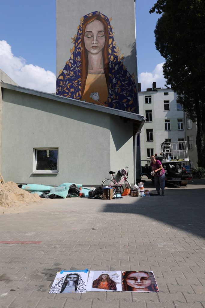 Usytuowanie muralu przy ulicy Wschodniej 70, to jest w centrum Łodzi, gdzie znajdują się kamienice opuszczone i zamieszkałe, remontowane i oczekujące na rewitalizację, jest dość odważnym wyborem autorki. Zapytana o to, czy nie obawia się negatywnego odbioru swojej pracy przez mieszkańców miasta, odpowiada – zostawiam to Jej.