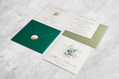 Kolory nadają zaproszeniom ślubnym unikalny charakter. W 2025 roku dominować będą odważne połączenia barw, głównie pasteli i ziemistych odcieni. Limonkowa zieleń, koralowy róż, jasny błękit czy delikatna lawenda – te kolory idealnie współgrają z naturalnymi motywami i romantycznym klimatem ślubu. Jeśli chcecie się wyróżnić, postawcie na kontrastujące akcenty, takie jak złote detale zestawione z głęboką zielenią czy grafitowym odcieniem. Ciekawe projekty zaproszeń ślubnych 2025 można znaleźć także w sklepie artMA.